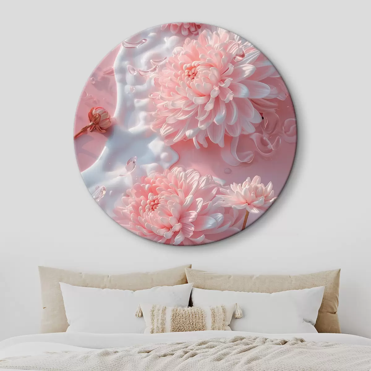 Tableaux rondes Composition de chrysanthème : quelques fleurs avec un soupçon de lait sur fond rose Nr r39640