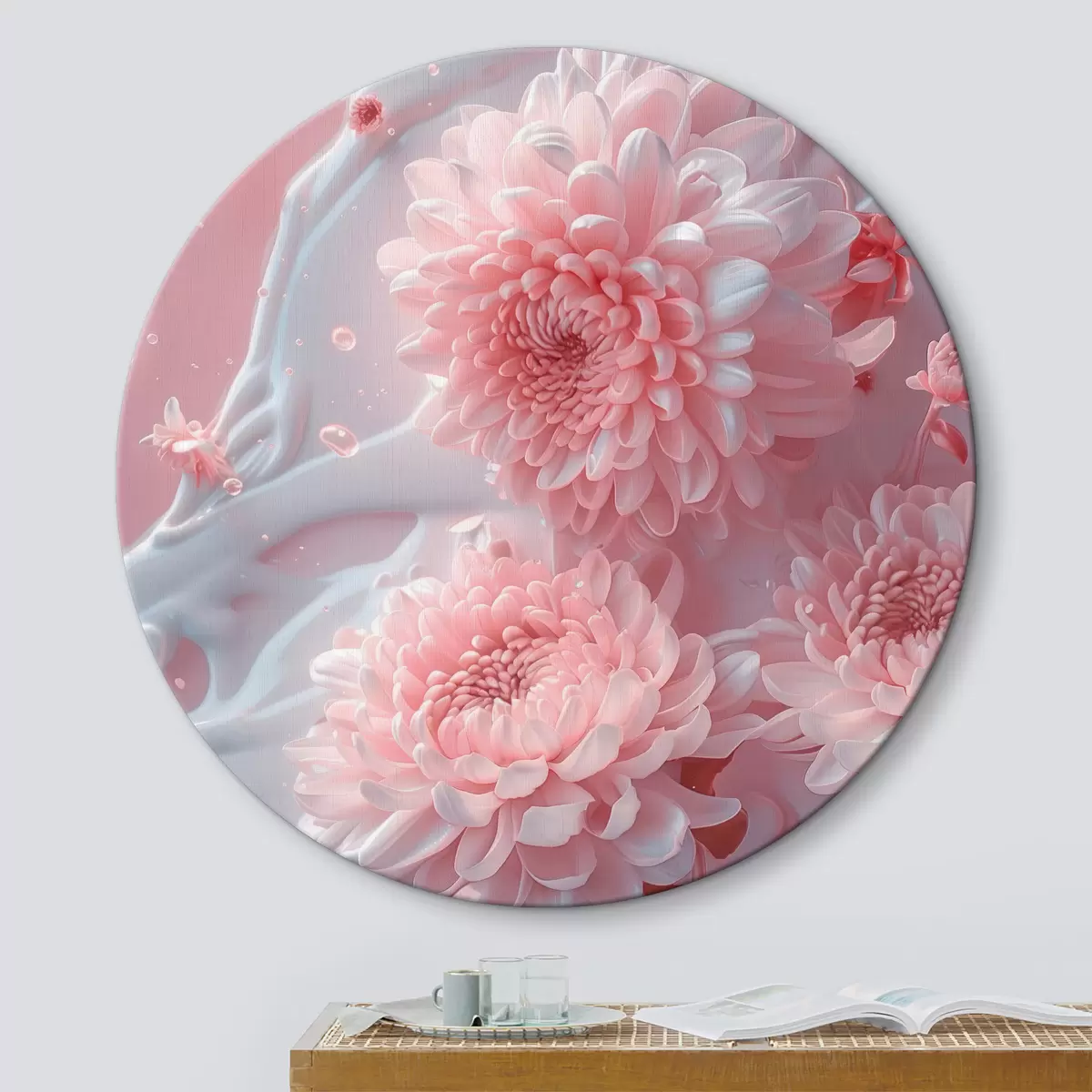 Tableaux rondes Chrysanthèmes avec un soupçon de lait sur fond rose : une composition florale r39641