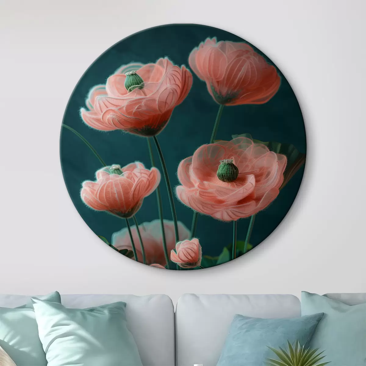 Tableaux rondes Fleurs roses géantes en fourrure en laine sur fond vert r39651