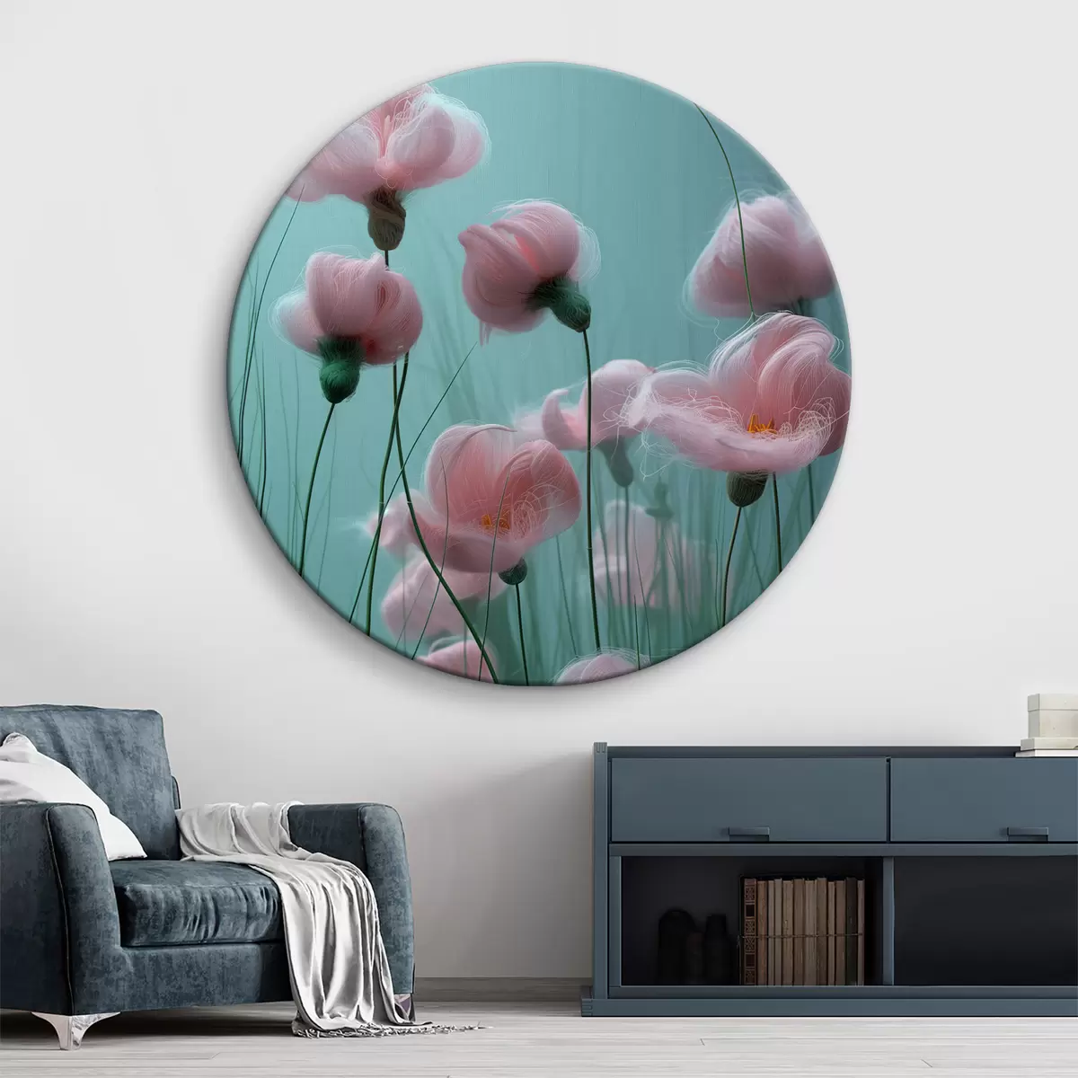 Tableaux rondes Fleurs roses géantes en fourrure en laine avec de longs rhizomes verts r39652