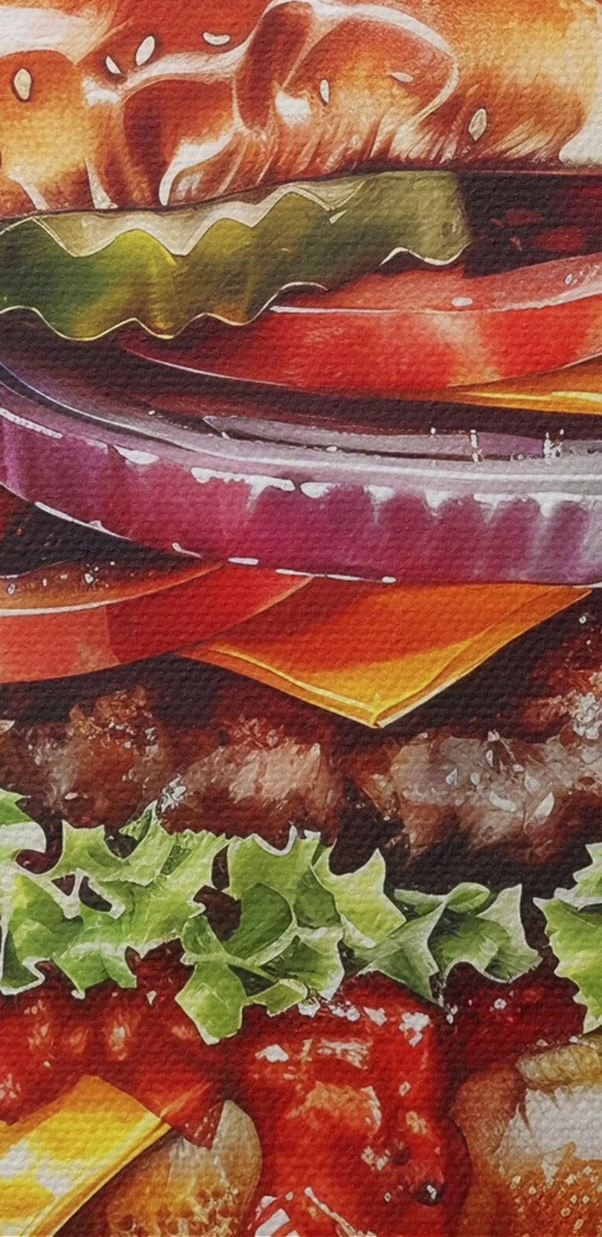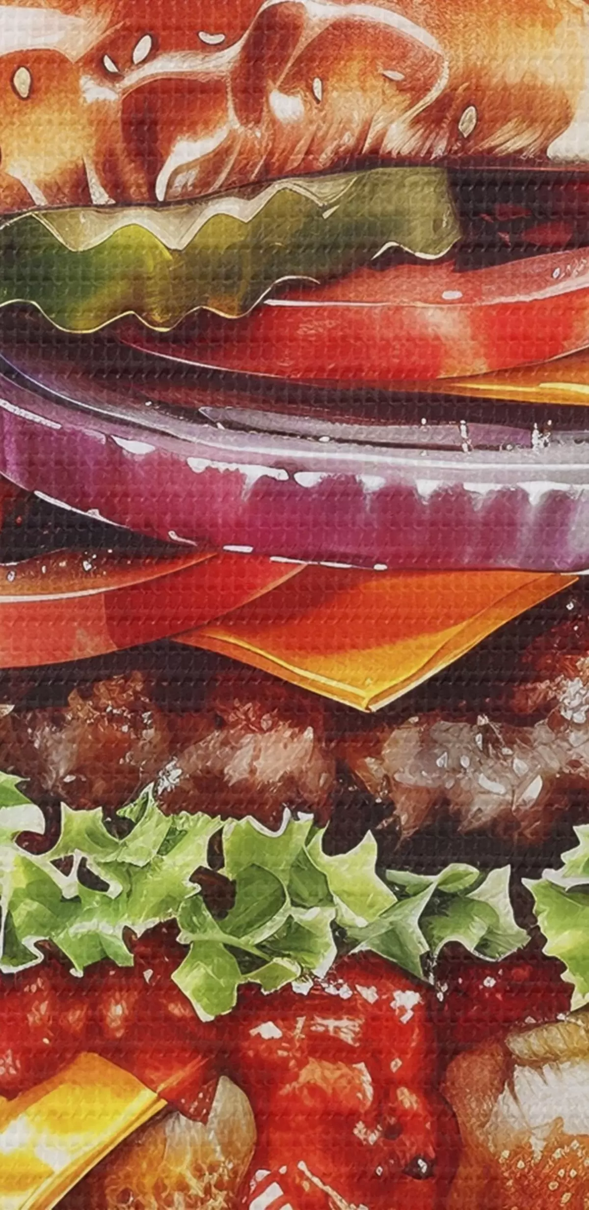 Tableaux rondes Délicieux burger à la viande, floral, aquarelle, art culinaire r39699