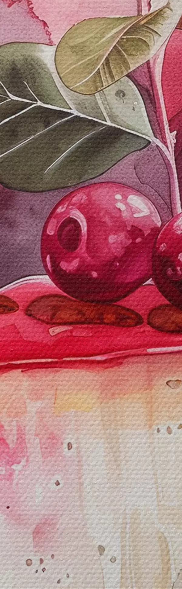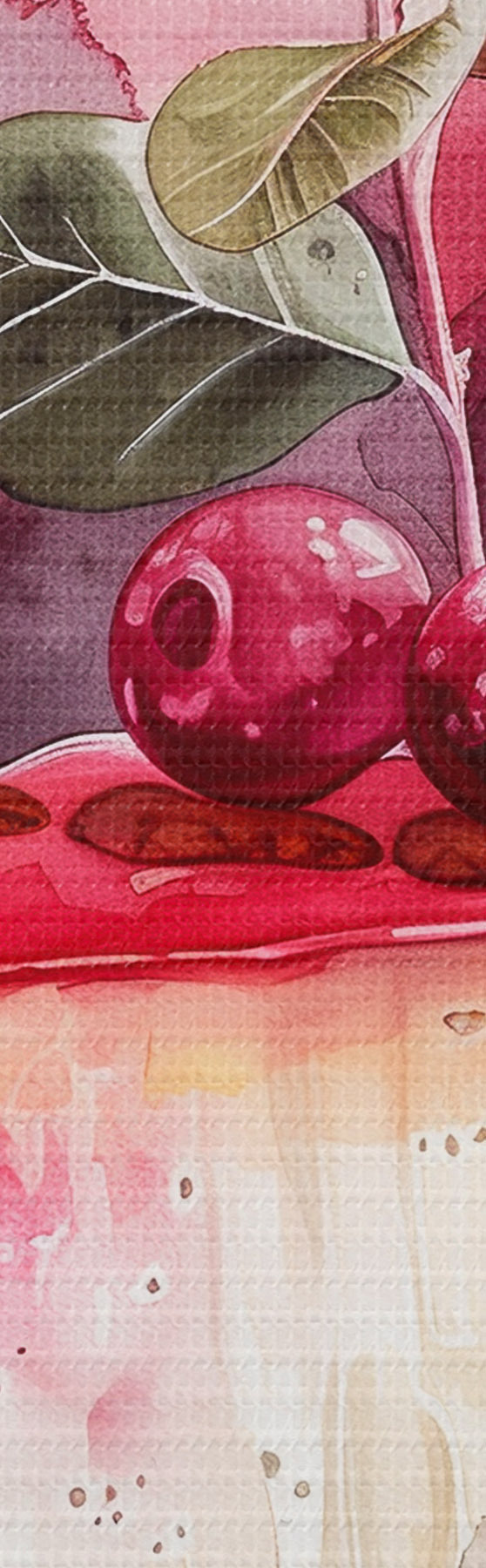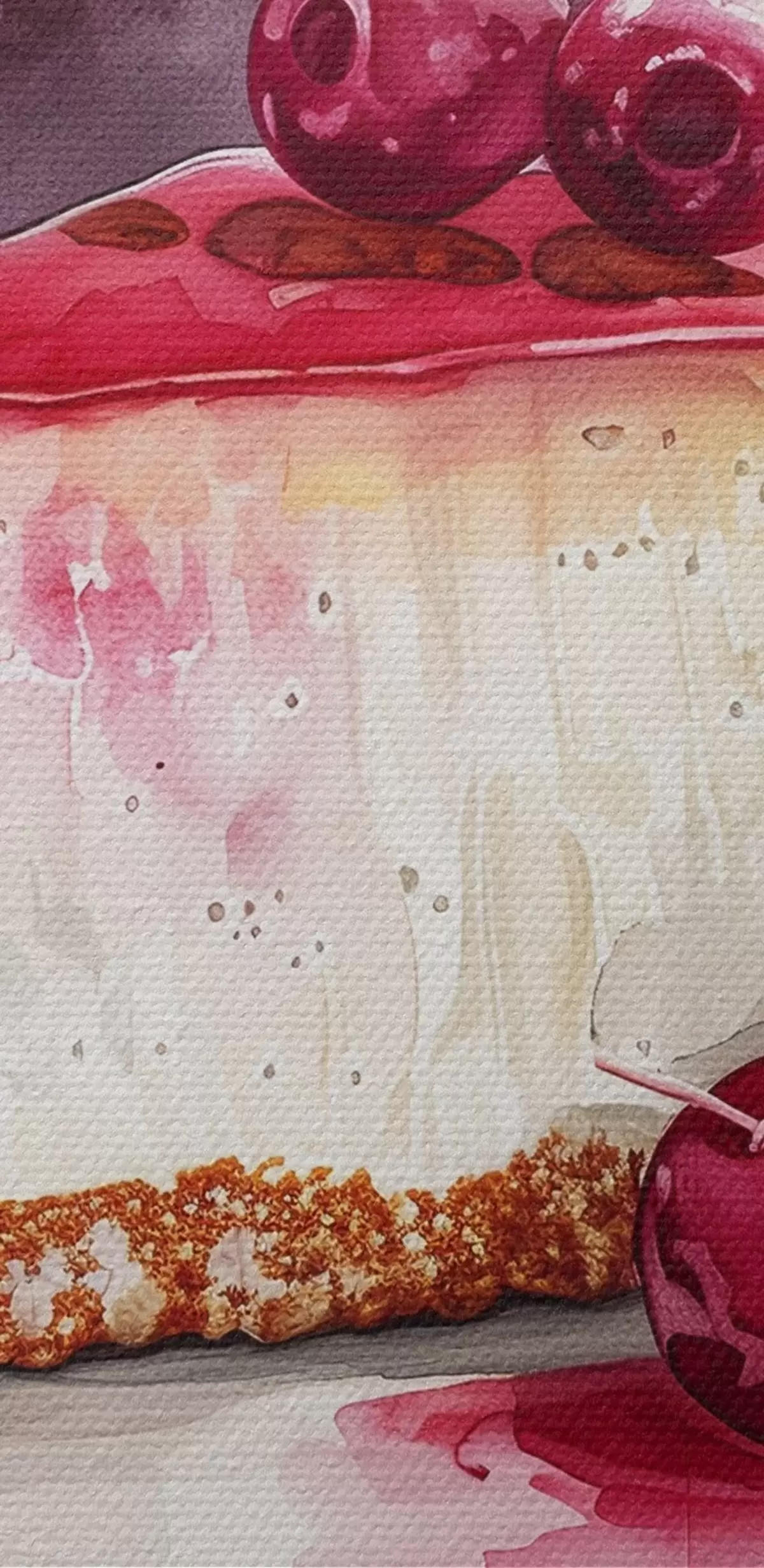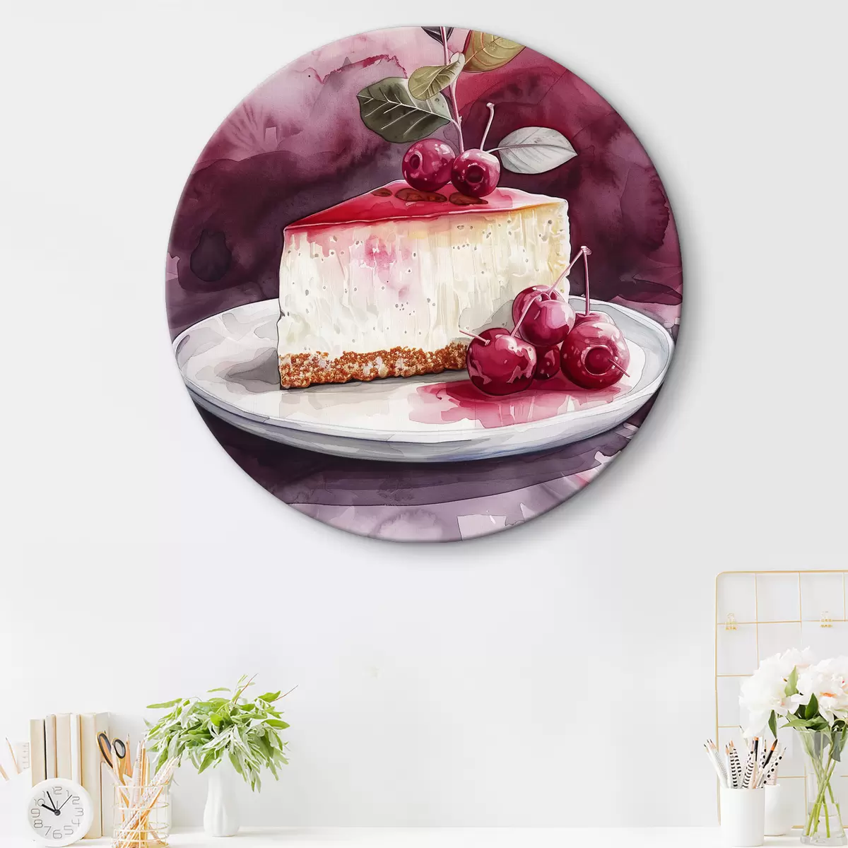 Tableaux rondes Cheesecake aquarelle aux cerises, art culinaire élégant, couleurs rouge et violet Nr r39700