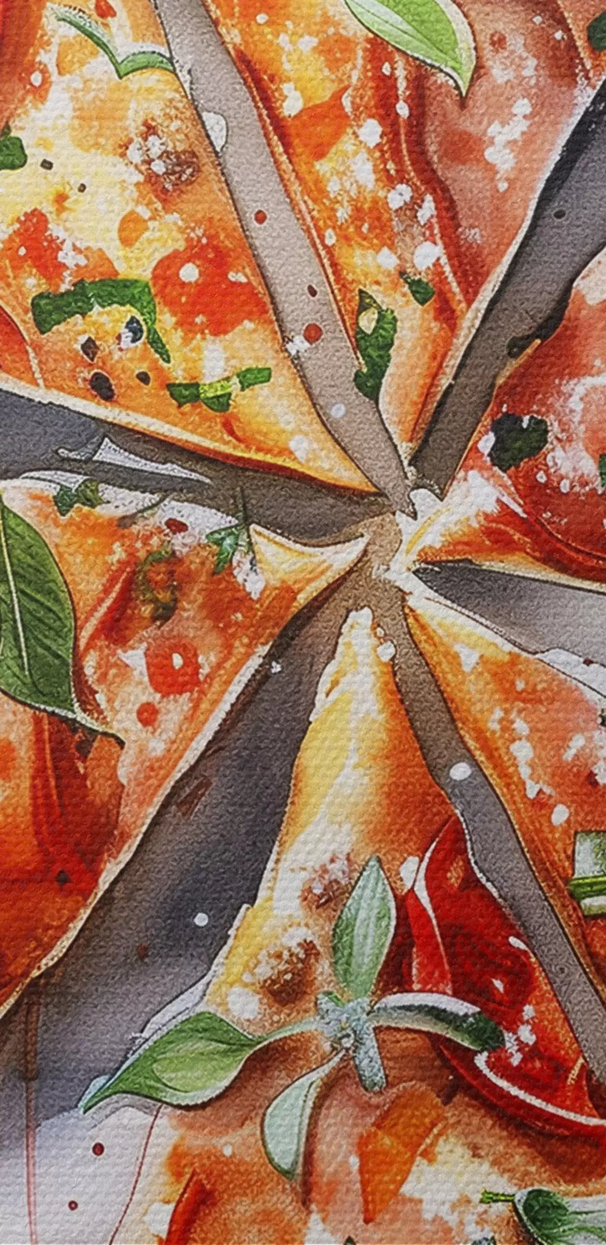 Tableaux rondes Pizza aquarelle, délicieuse, tomates et fromage, art culinaire, table en bois r39704