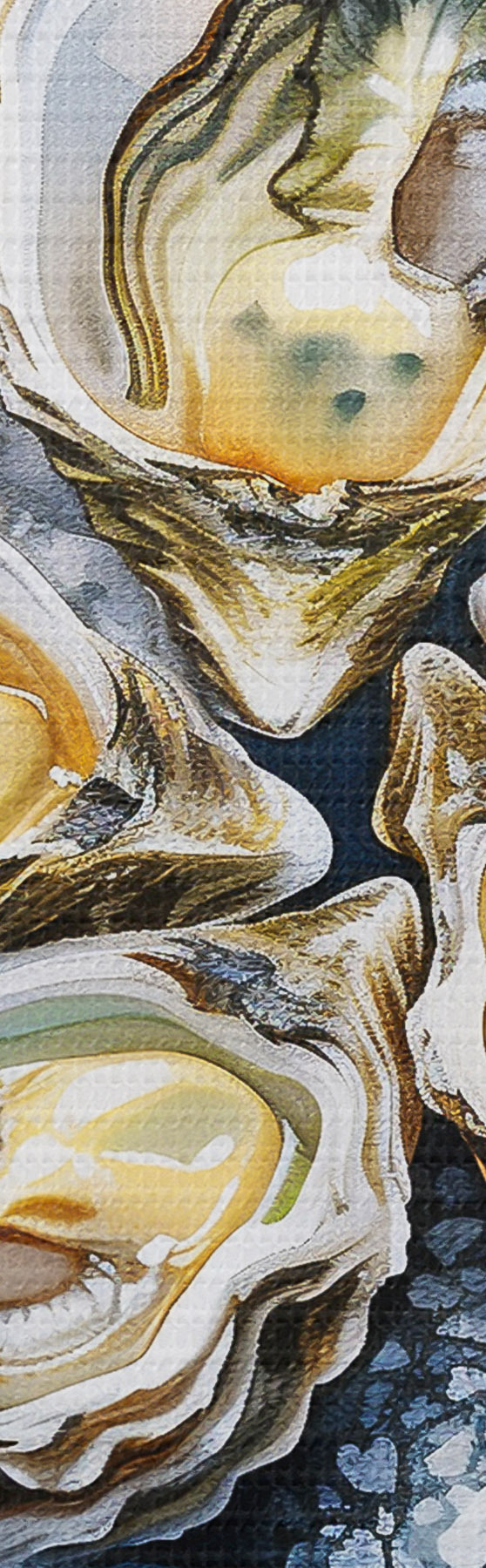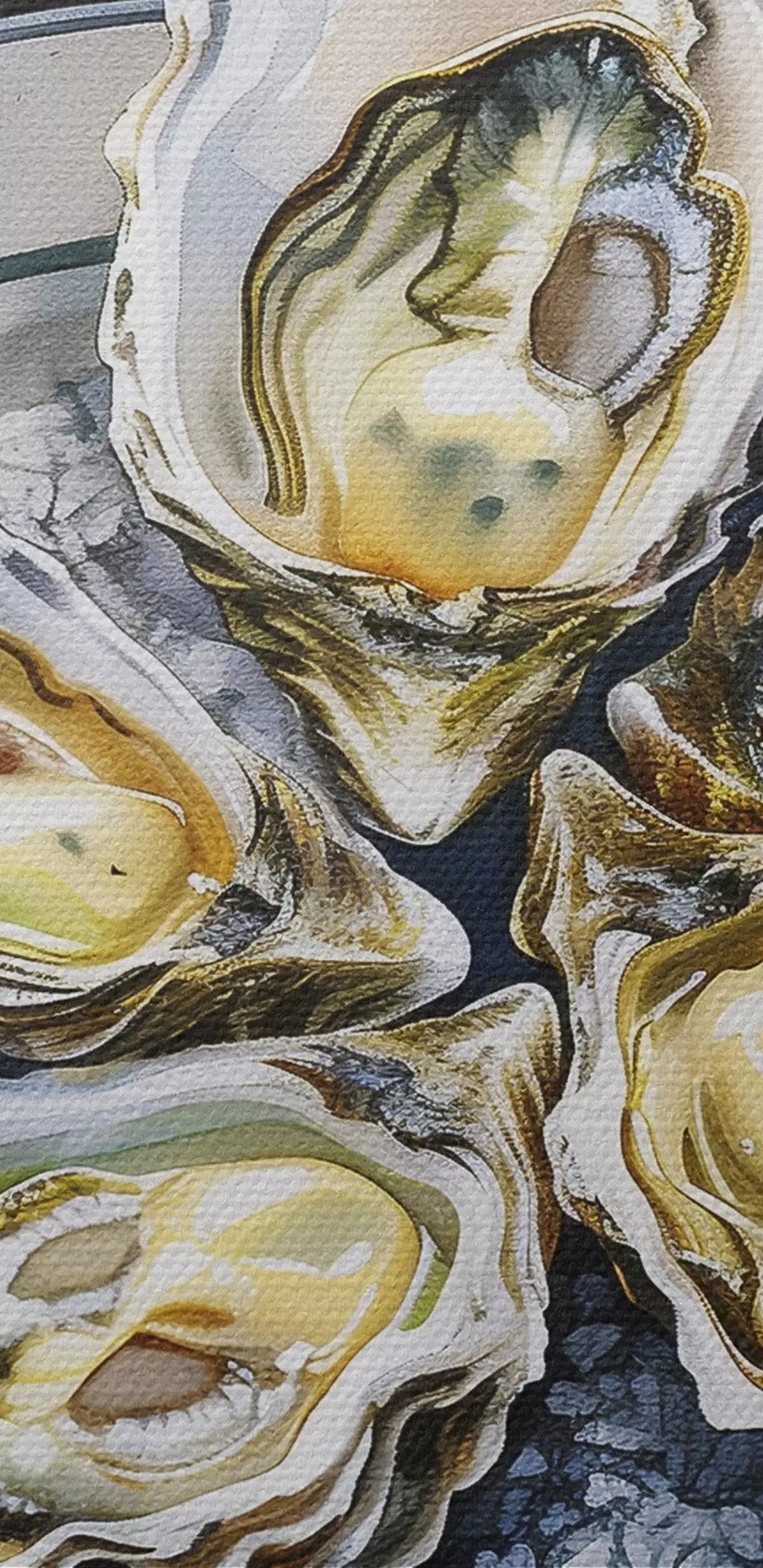 Tableaux rondes Huîtres élégantes dans l'assiette, citrons et fleurs, couleurs estivales, méditerranéennes r39710