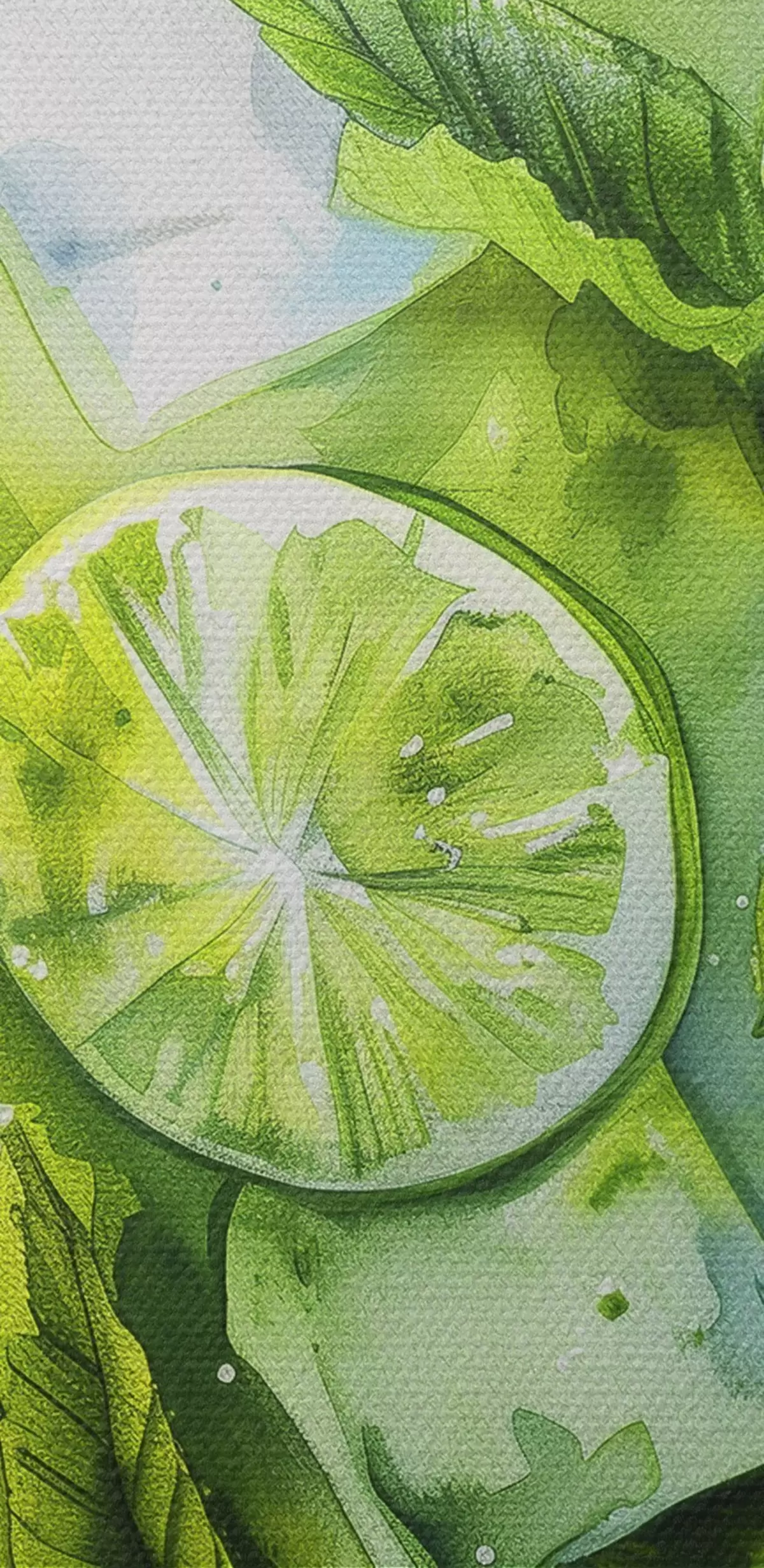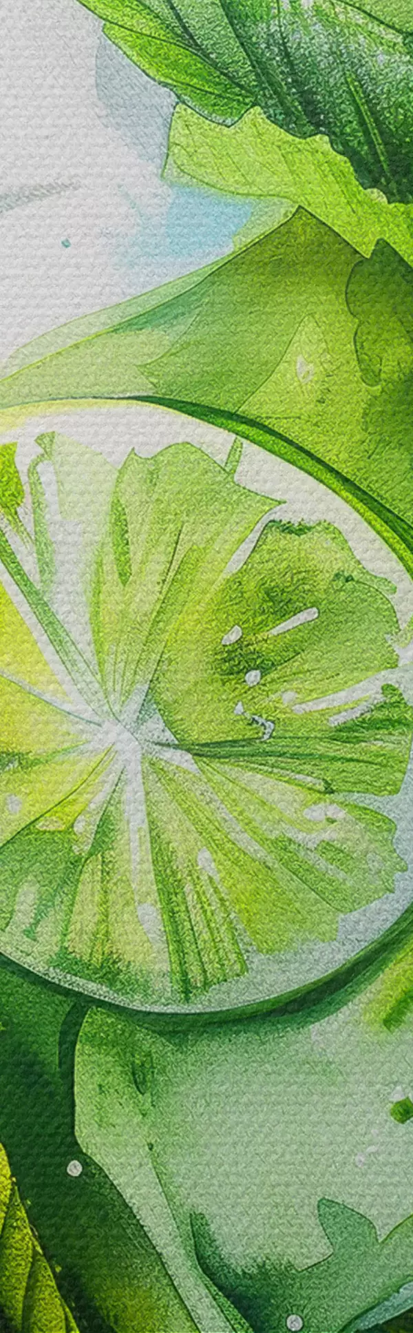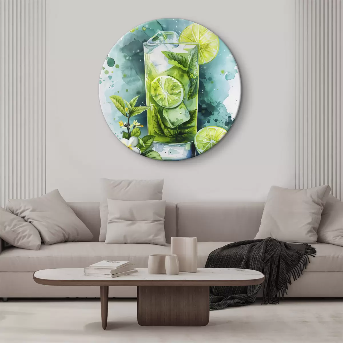 Tableaux rondes Cocktail d'été aquarelle, mojito, citron vert et menthe, fleurs, couleurs vertes r39712