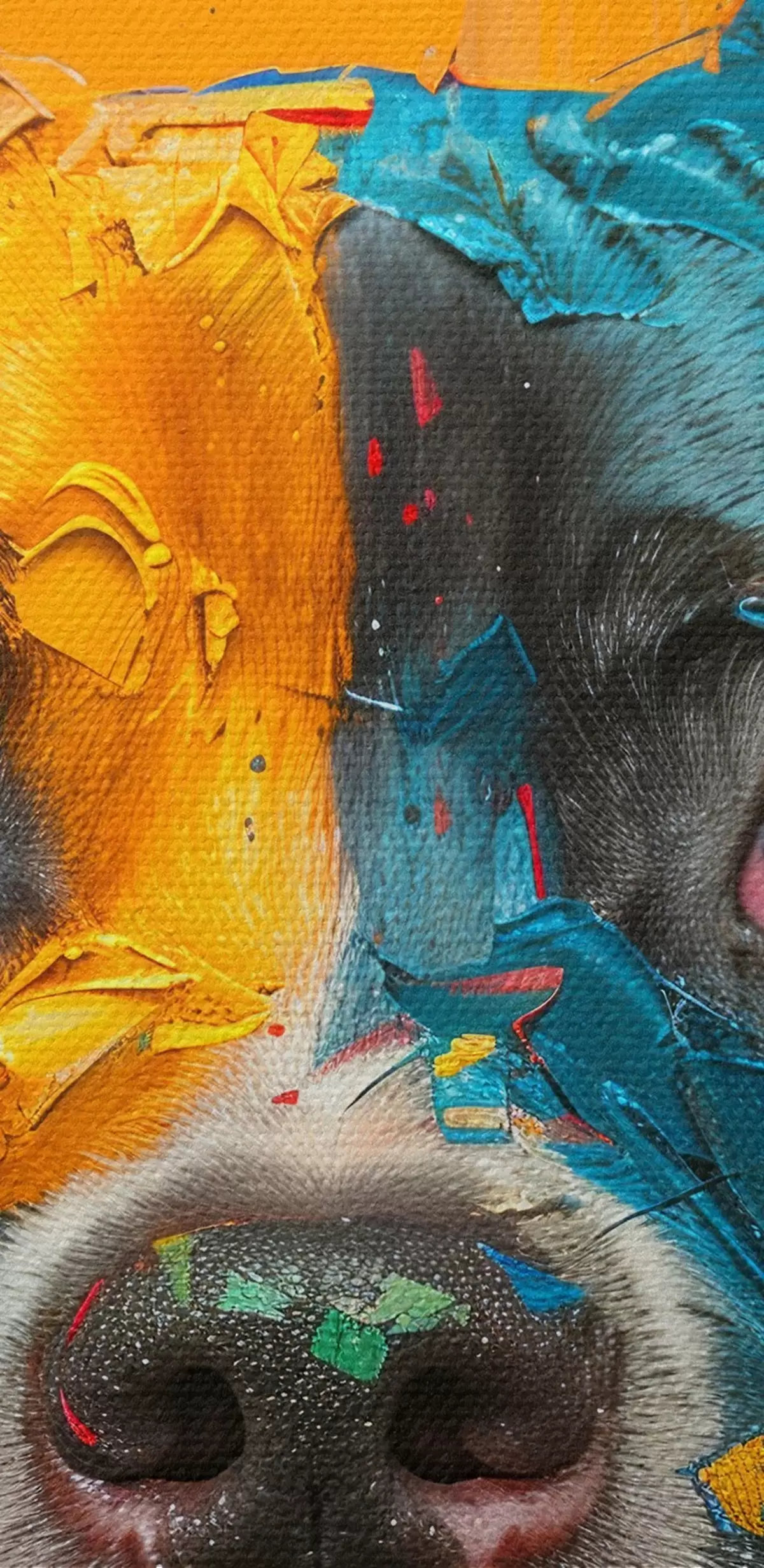 Tableaux rondes Portrait d'un Pitbull avec des coups de pinceau à huile jaune et bleu r39722
