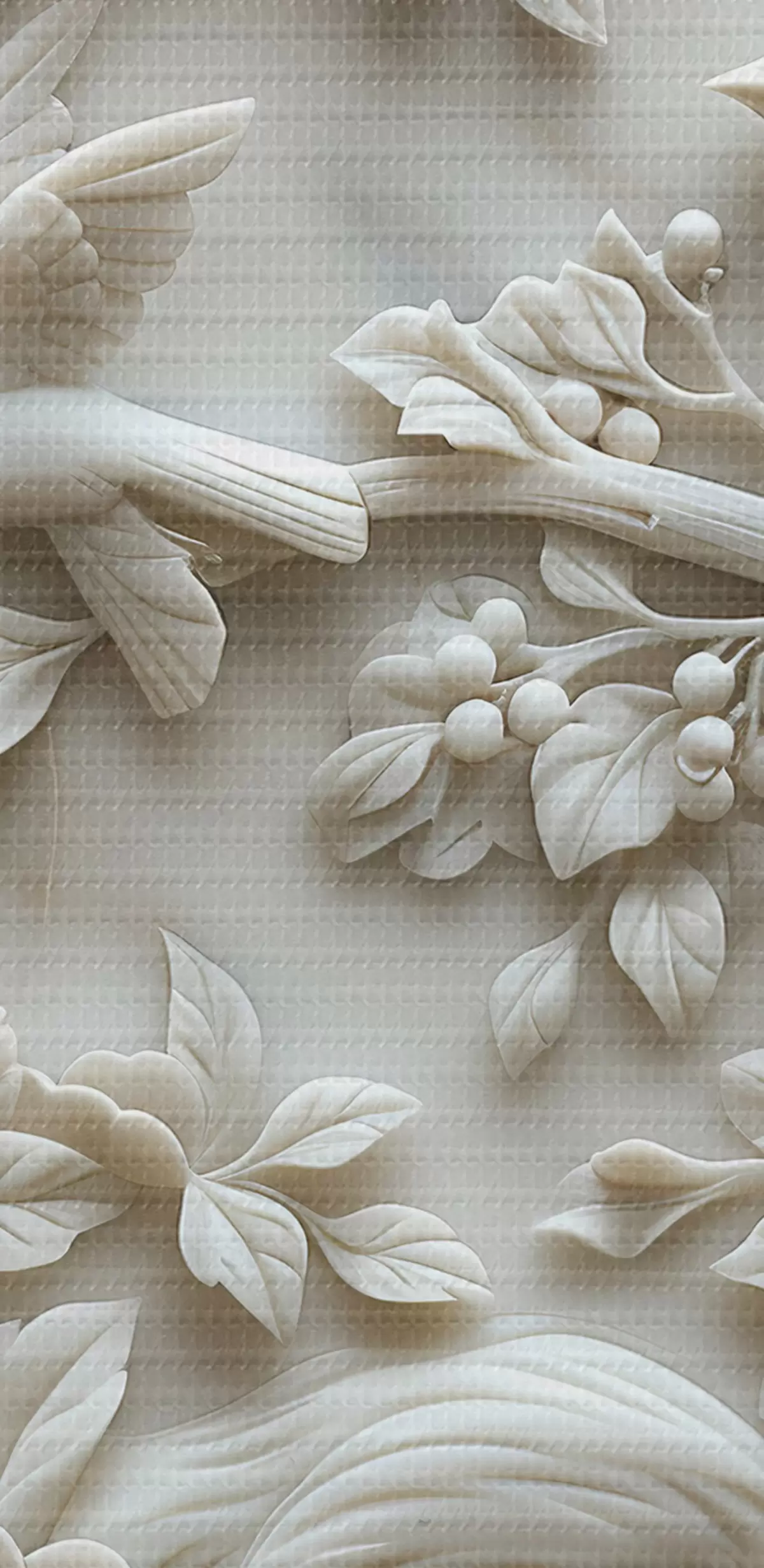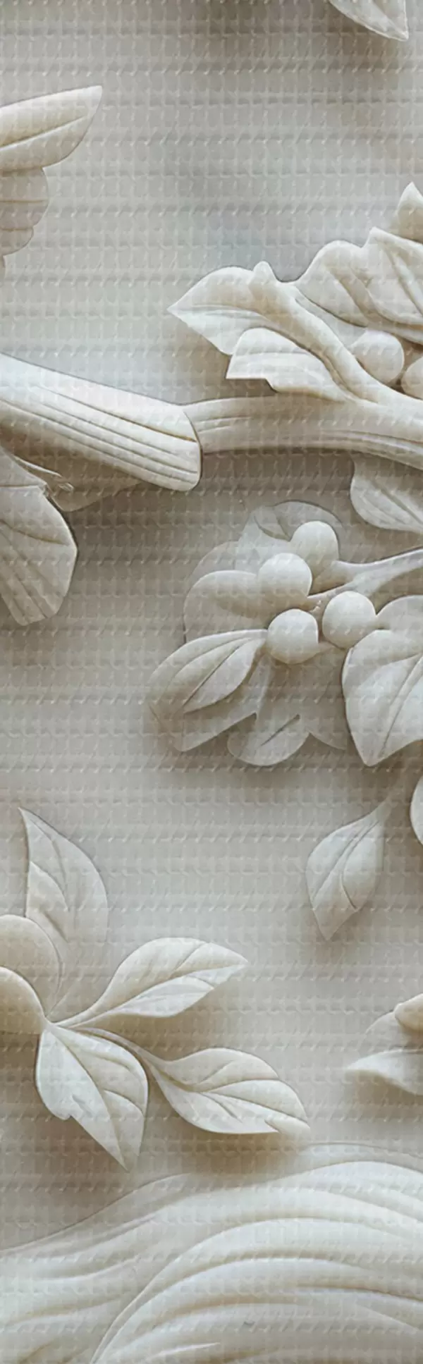 Tableaux rondes Jardin en marbre blanc avec bas-relief d'oiseaux et de fleurs r39728