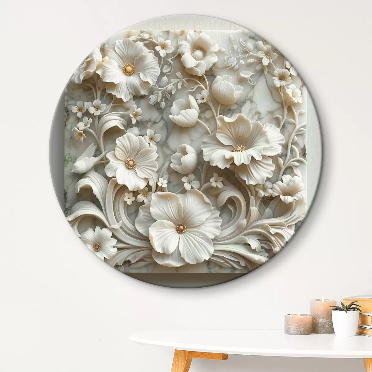Tableaux rondes Jardin en marbre blanc avec bas-relief d'oiseaux r39729