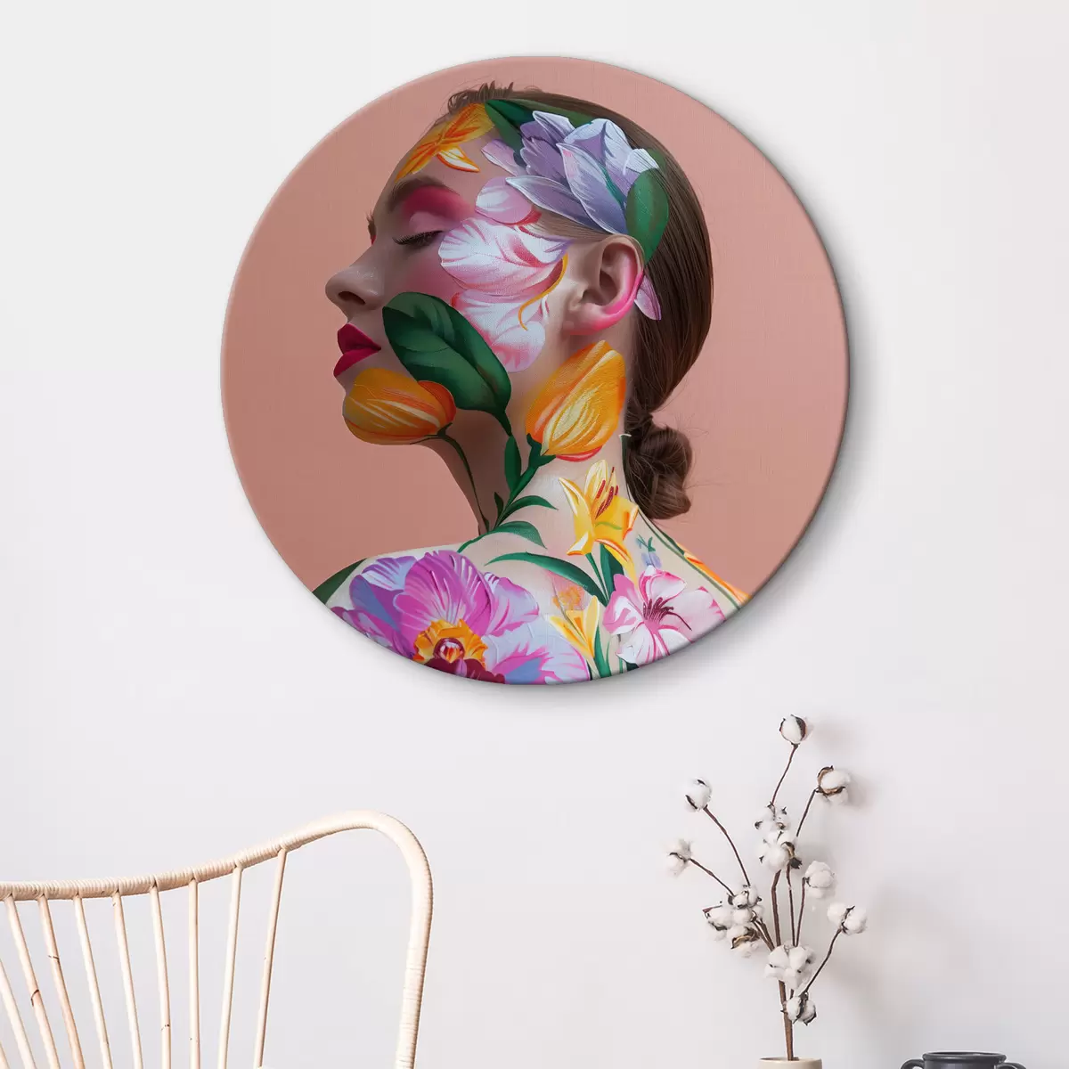 Tableaux rondes Maquillage de peinture de fleurs colorées sur le corps de la femme Nr r39732
