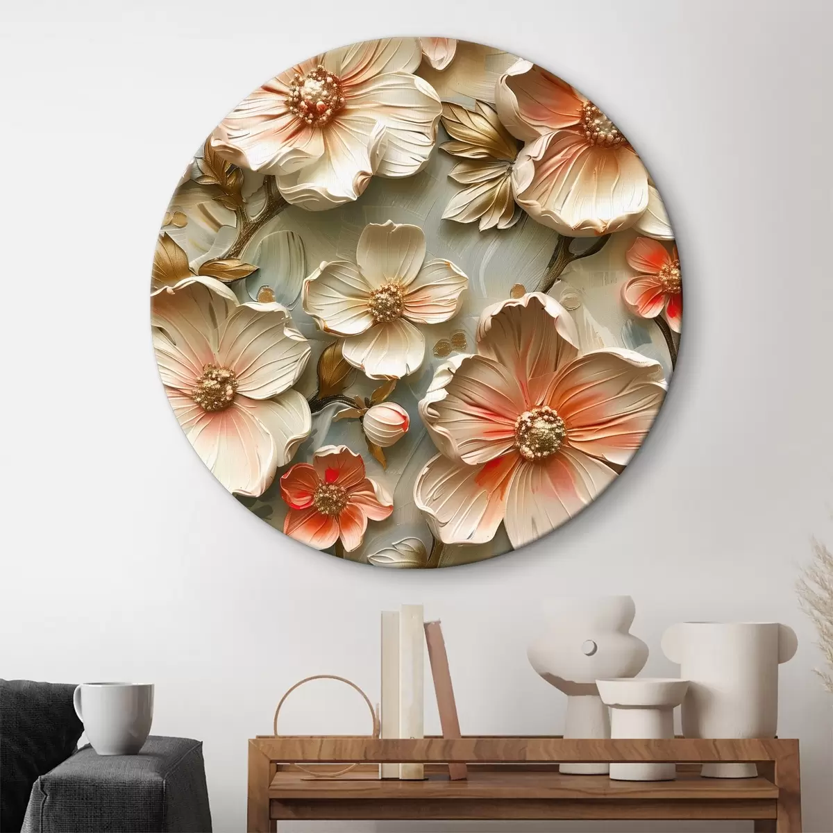 Tableaux rondes Peinture sculpturale au couteau à palette, délicates fleurs séchées aux couleurs pastel r39749