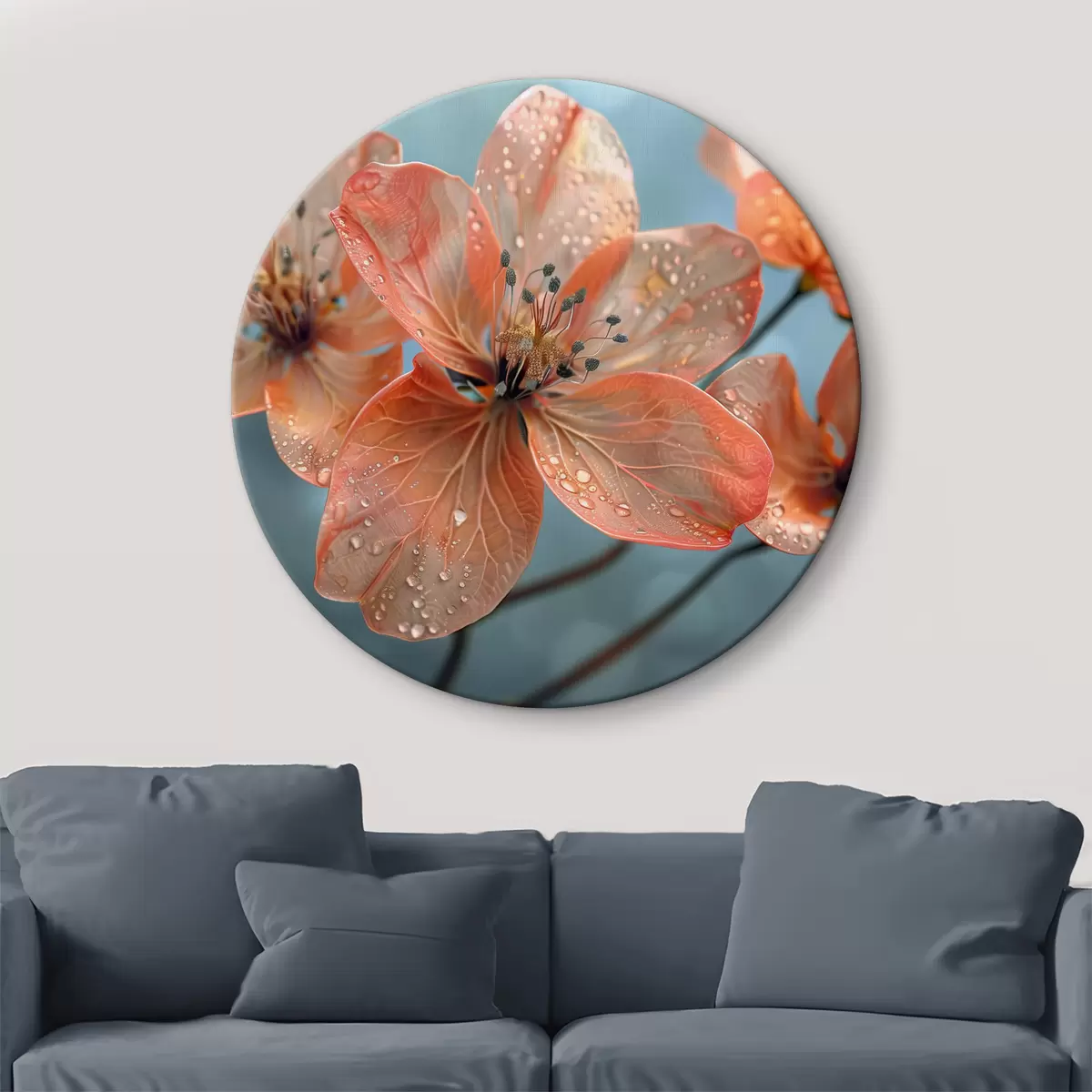 Tableaux rondes Belle fleur de lys avec des gouttes de rosée sur fond bokeh Nr r39755