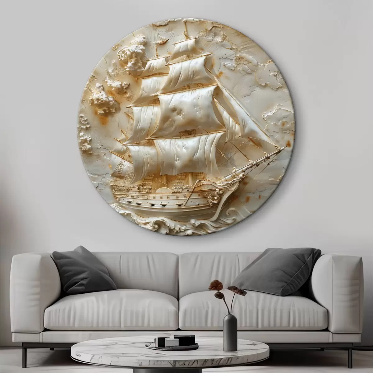 Tableaux rondes Bas-relief d'un navire naviguant sur la mer r39757