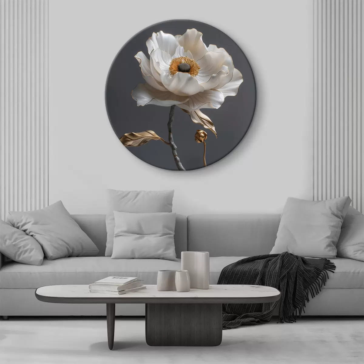 Tableaux rondes Lotus blanc gracieux fleurissant de pierre Nr r39765
