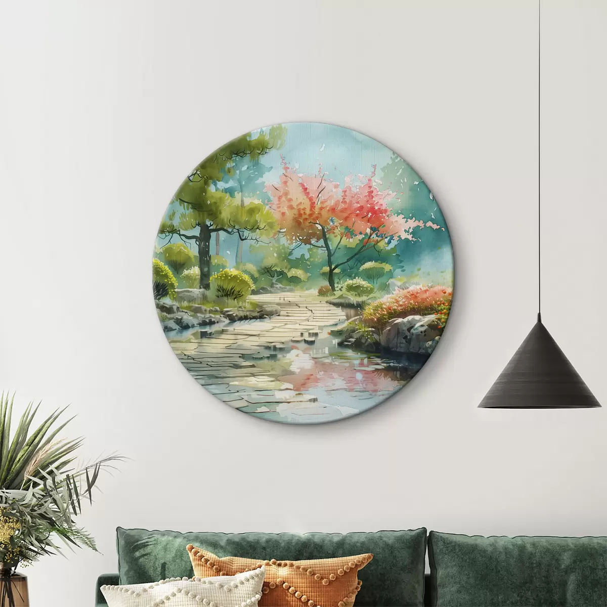 Tableaux rondes Parc arboré et buissons fleuris, petit étang, cerisier Nr r39778