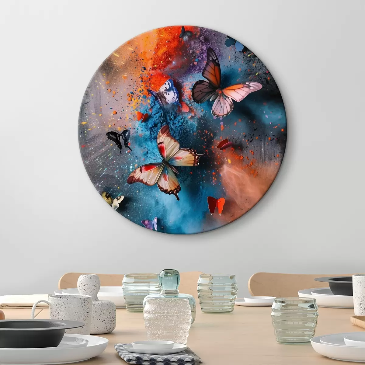 Tableaux rondes Papillons sur fond de touches de peinture Nr r39803