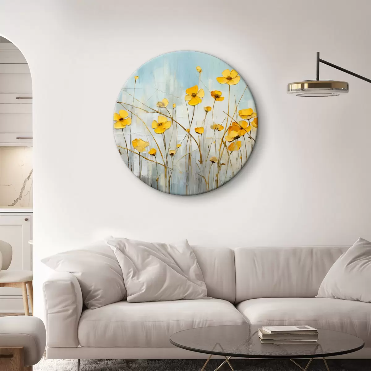 Tableaux rondes Petites fleurs jaunes sur une longue peinture à l’huile de tige r39823