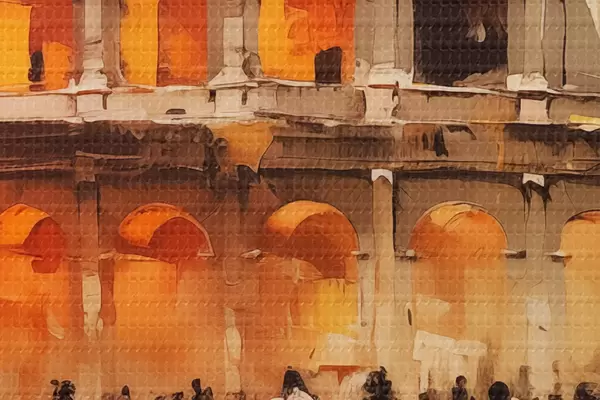Tableaux rondes Gens marchant sur la place près de la peinture à l’huile du Colisée Nr r39825