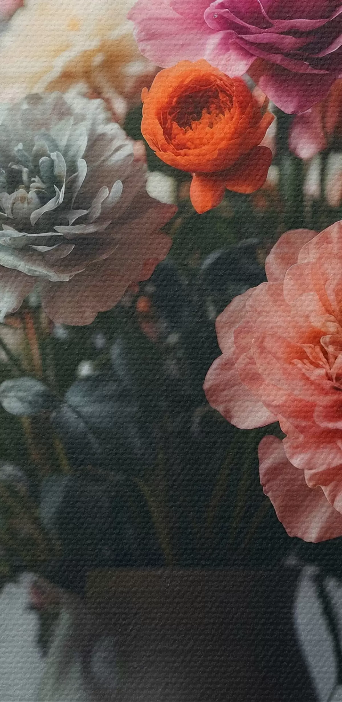 Trois types de matériaux peuvent être commandés : Economic Canvas - matériau dense et durable pour l'impression numérique, identique à la toile de peintre, surface imperméable, reproduction réaliste des détails, matériau à grain moyen. Premium Canvas - la texture ressemble à celle d'une toile de peintre (petits fils entrelacés). Reproduction douce et détaillée de l'image sur une surface mate. Eco-Premium - tissu 100 % coton de haute qualité. Grâce aux fibres naturelles de coton, le matériau est durable et résistant à l'usure. Excellente reproduction des couleurs et des détails.