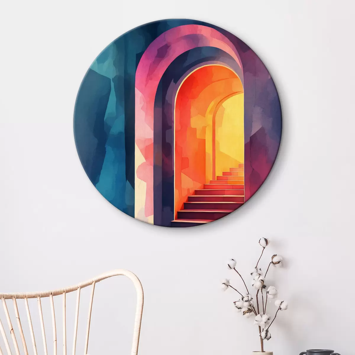 Tableaux rondes Entrée à plusieurs niveaux à l'aquarelle r39863