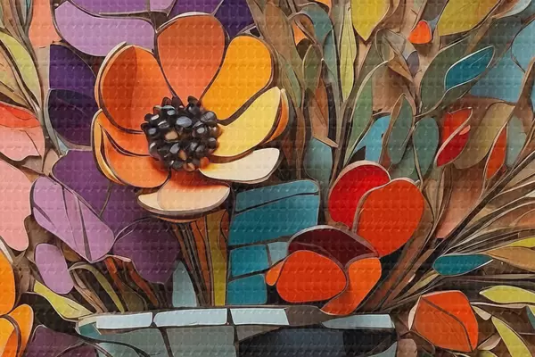 Tableaux rondes Vase avec fleurs en style mosaïque r39867