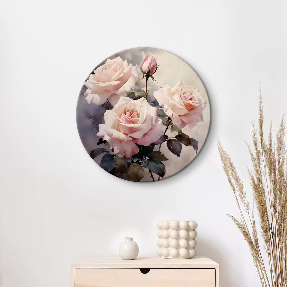 Tableaux rondes Aquarelle de roses blanches et roses sur fond sombre Nr r39927
