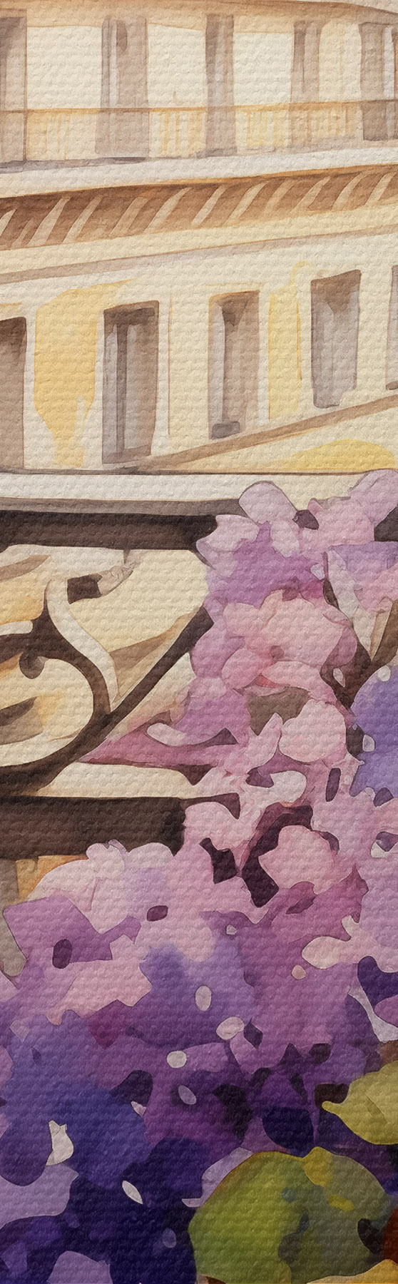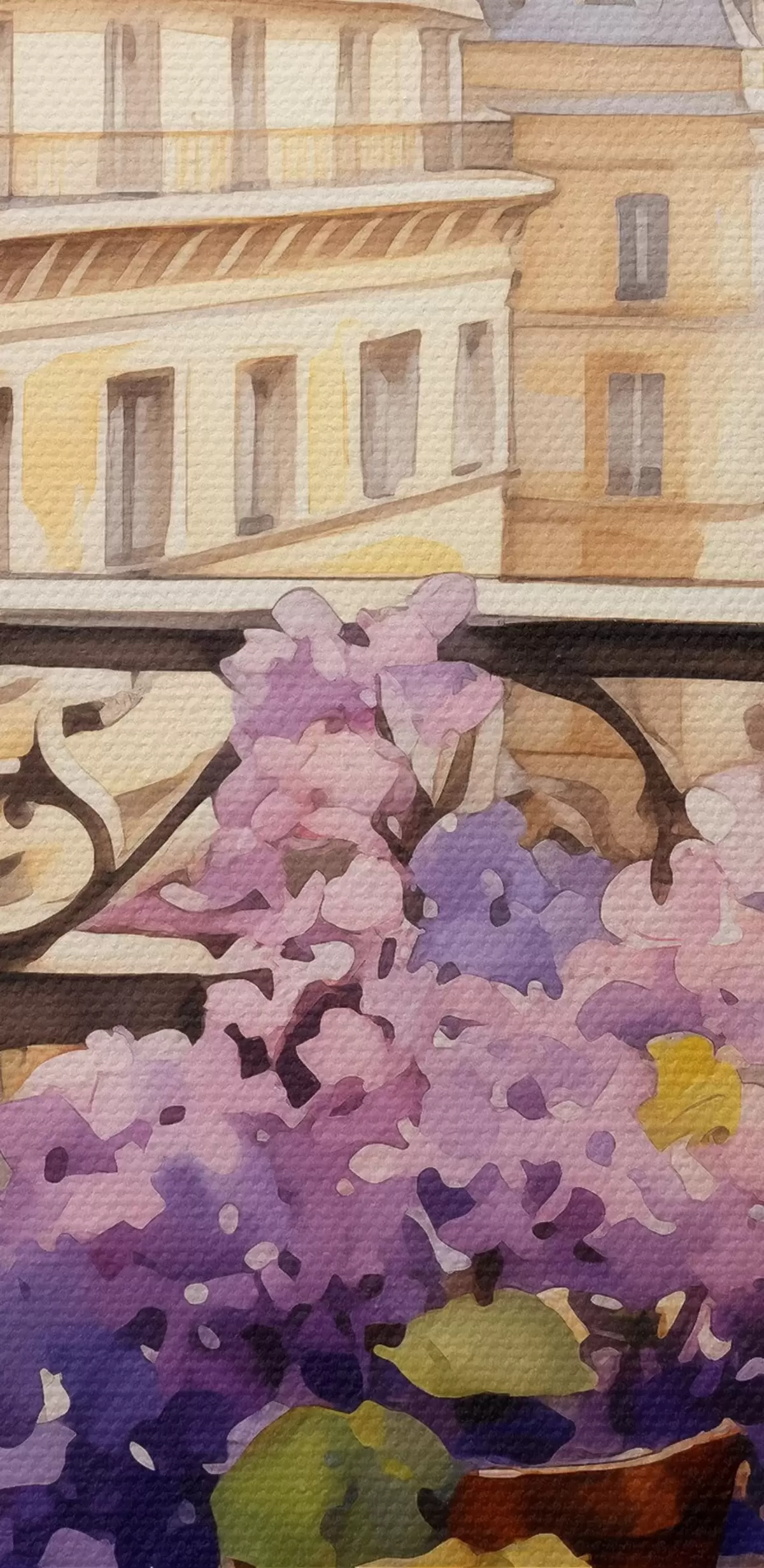 Tableaux rondes Violettes en pot sur un balcon à Paris aquarelle Nr r39931