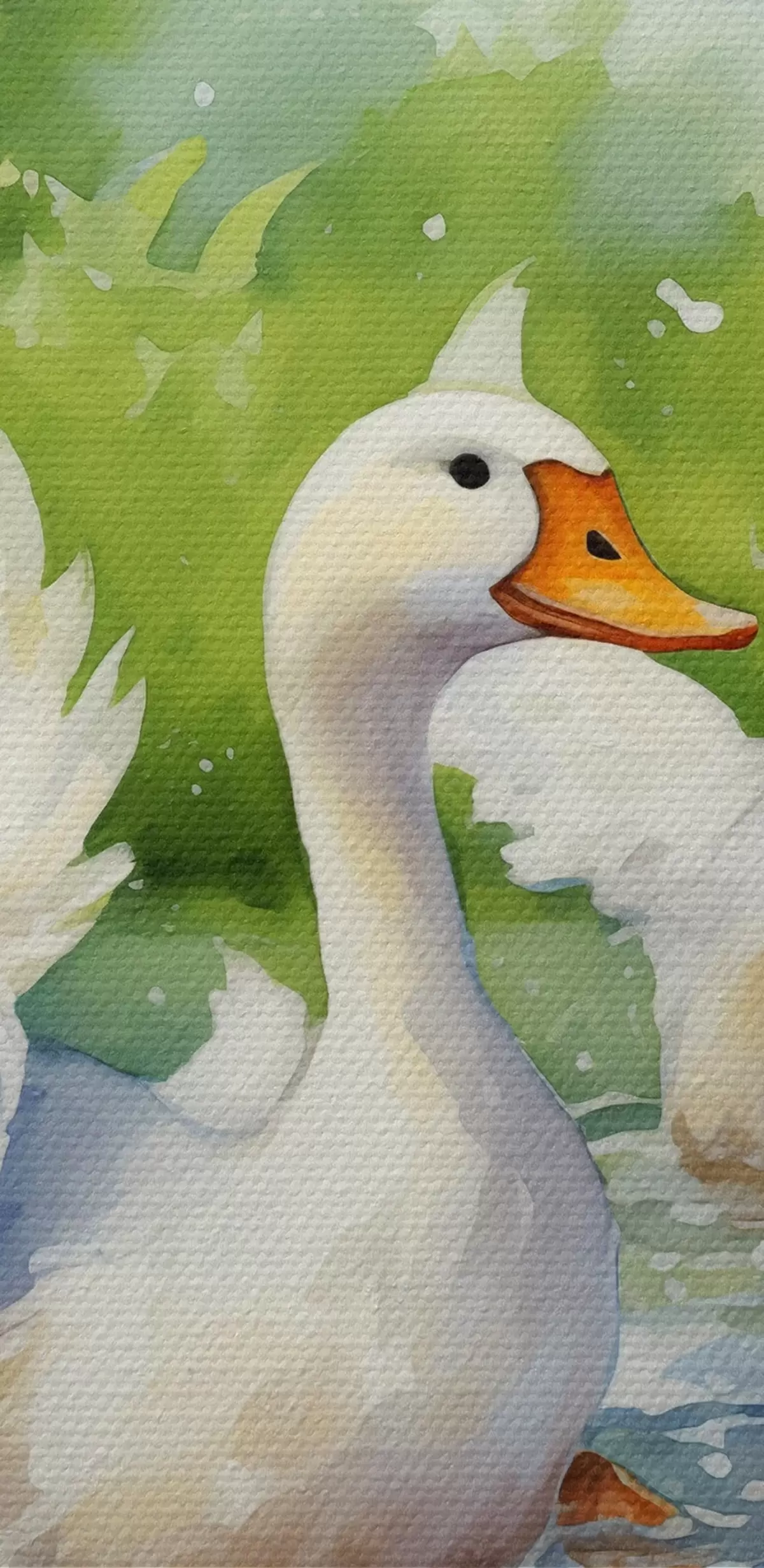 Tableaux rondes Oies blanches se baignant dans un étang, aquarelle r39939