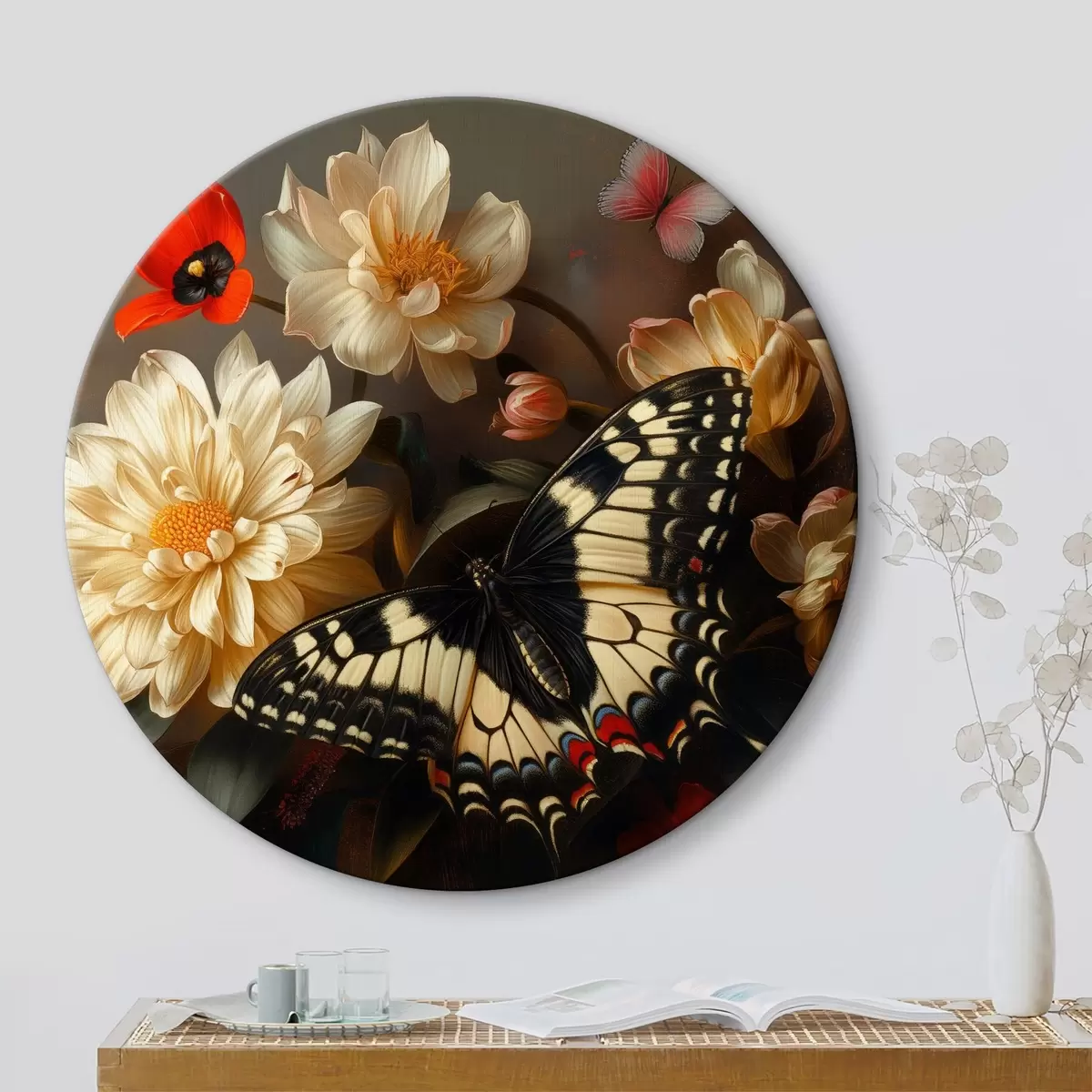 Tableaux rondes Chrysanthèmes, bouquet, fleurs, tulipe, papillon Nr r39951