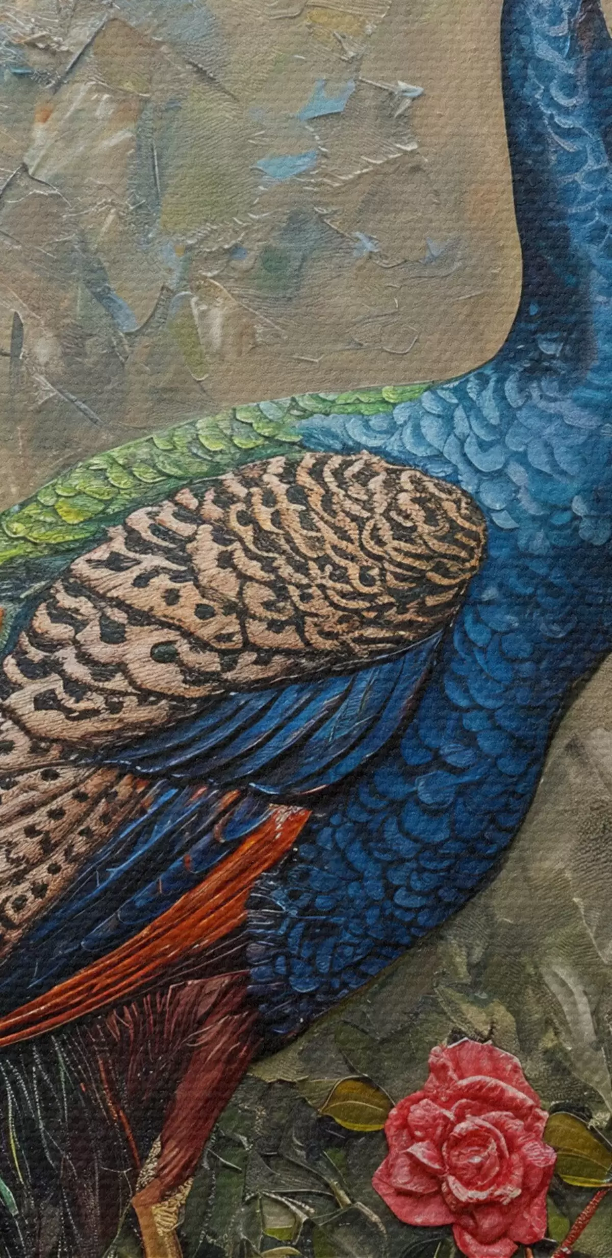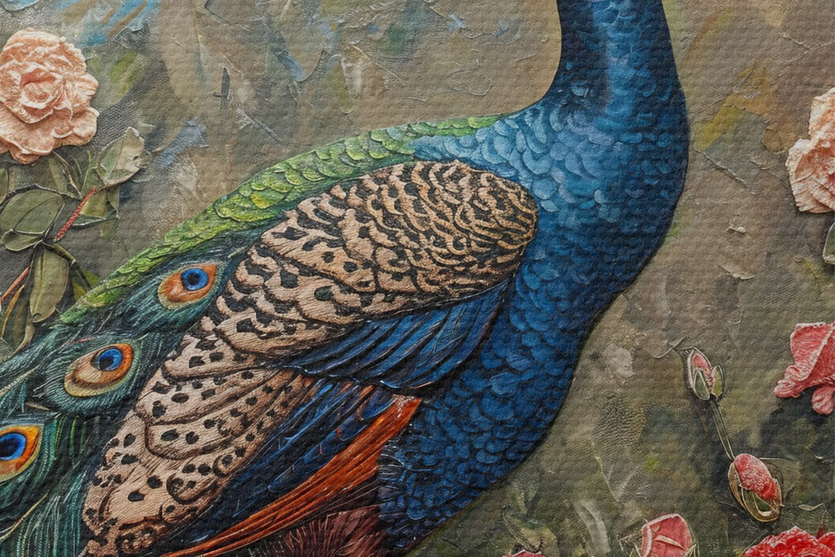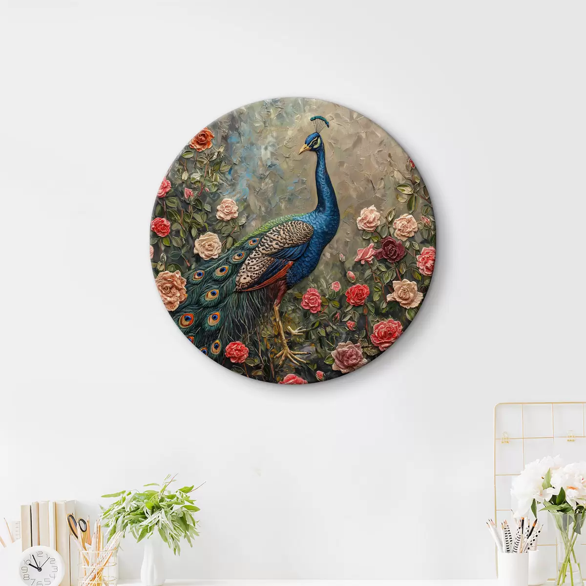 Tableaux rondes Paon, fleurs artisanales, jardin r39959
