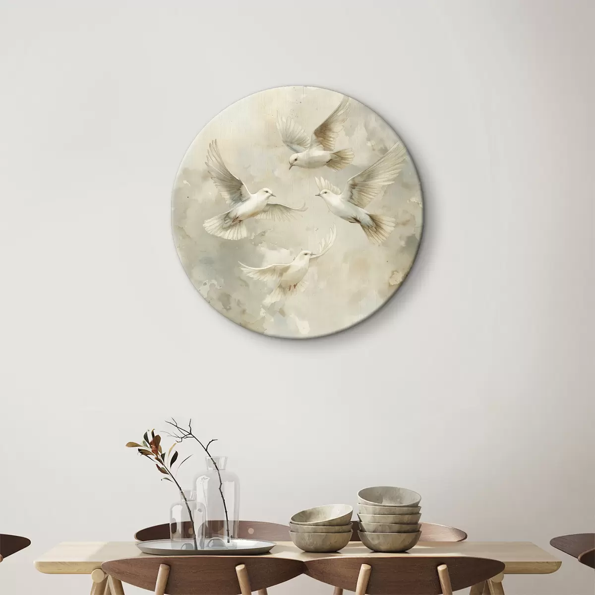 Tableaux rondes Oiseaux volants à l'aquarelle, couleurs douces beige et blanc, pigeons Nr r39976