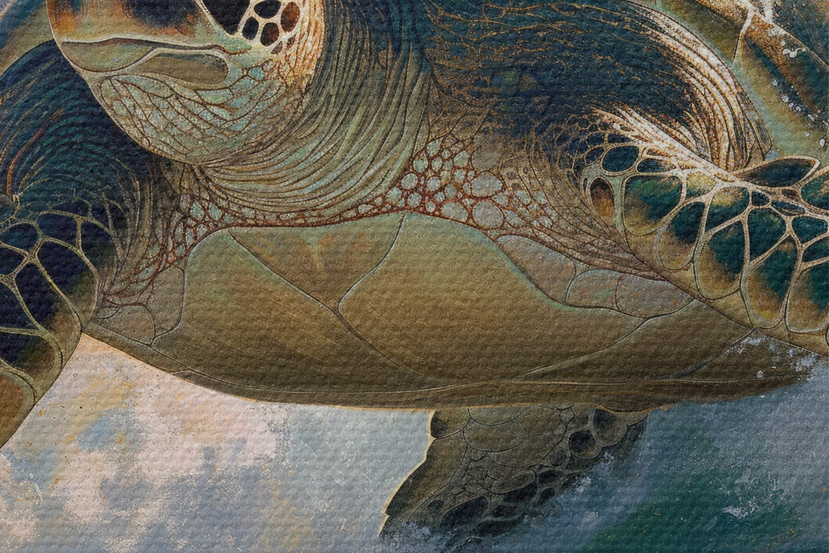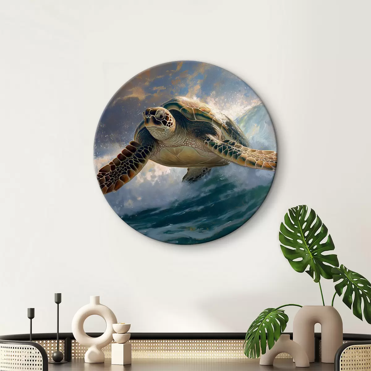 Tableaux rondes Tortue, eau, vert, bleu Nr r40001