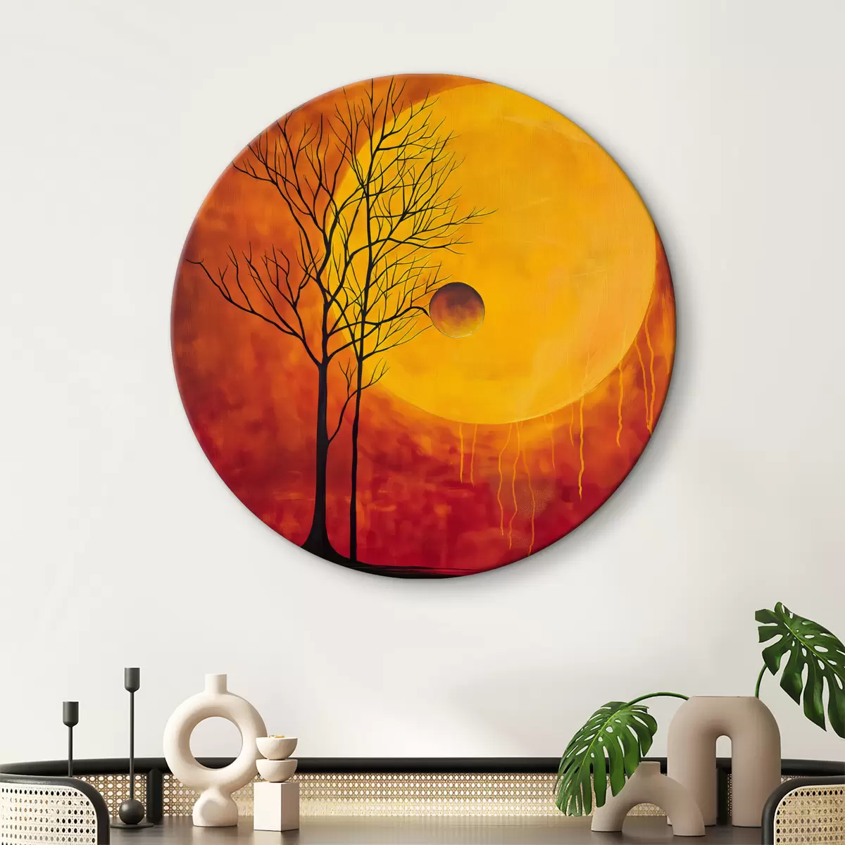 Tableaux rondes Abstraction, soleil, rouge, jaune r40005