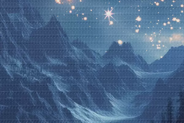 Tableaux rondes Velaris, montagnes, étoiles r40010