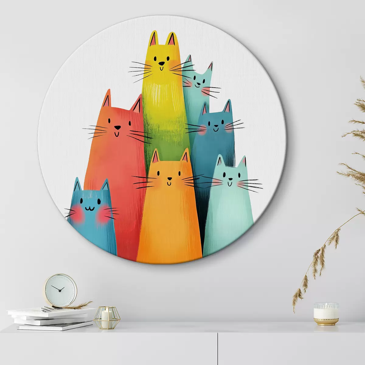 Tableaux rondes Chats multicolores abstraits Nr r40041