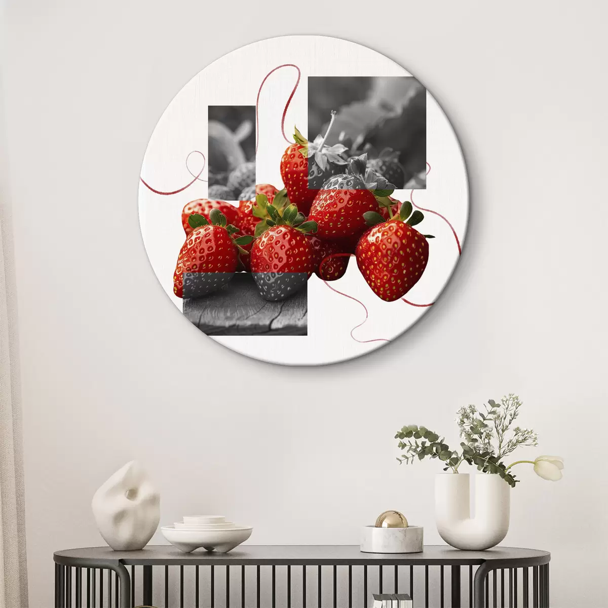 Tableaux rondes Fraises, art abstrait, photoréalisme, baies d'été Nr r40046