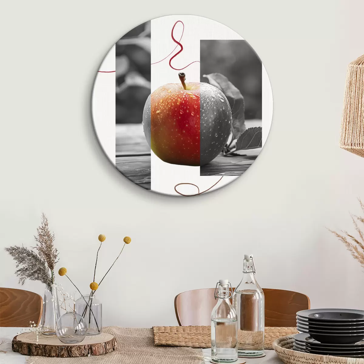 Tableaux rondes Art abstrait avec pomme juteuse, photoréalisme, fruits d'été Nr r40048