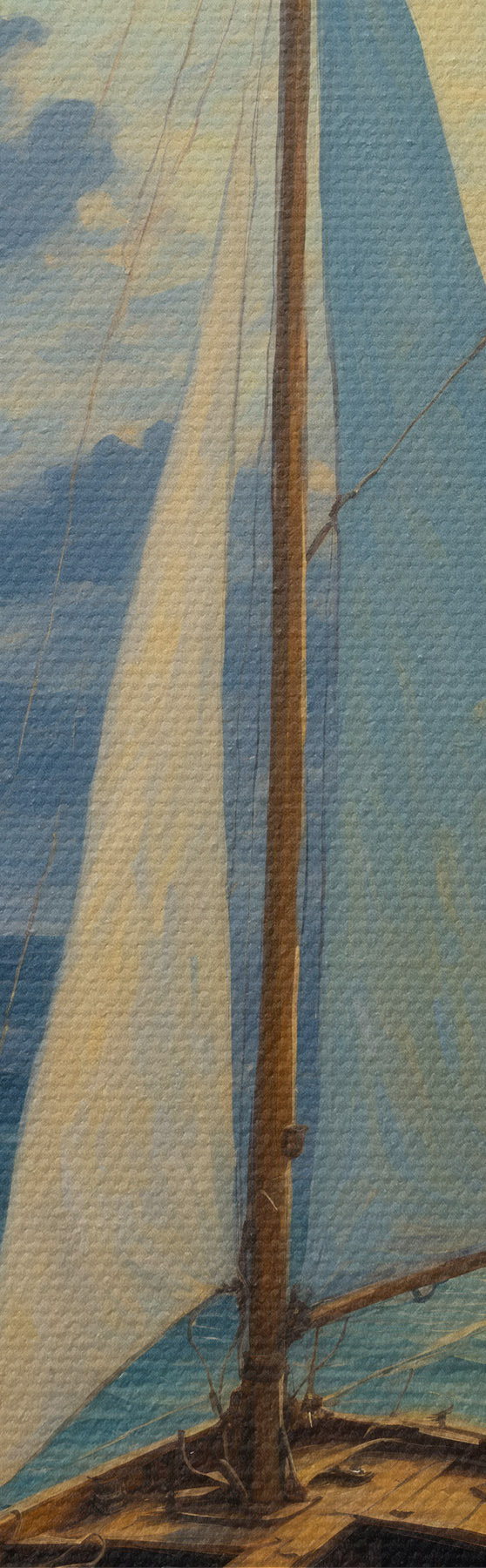 Trois types de matériaux peuvent être commandés : Economic Canvas - matériau dense et durable pour l'impression numérique, identique à la toile de peintre, surface imperméable, reproduction réaliste des détails, matériau à grain moyen. Premium Canvas - la texture ressemble à celle d'une toile de peintre (petits fils entrelacés). Reproduction douce et détaillée de l'image sur une surface mate. Eco-Premium - tissu 100 % coton de haute qualité. Grâce aux fibres naturelles de coton, le matériau est durable et résistant à l'usure. Excellente reproduction des couleurs et des détails.