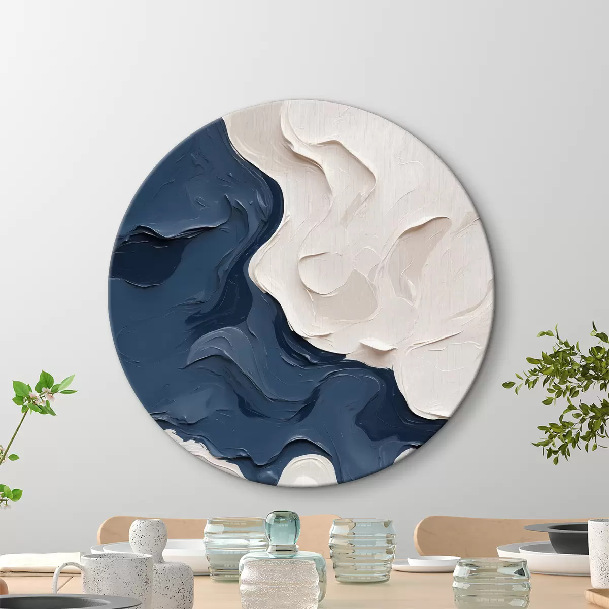 Tableaux rondes Abstraction avec des couleurs à l'huile blanches et bleues Nr r40058