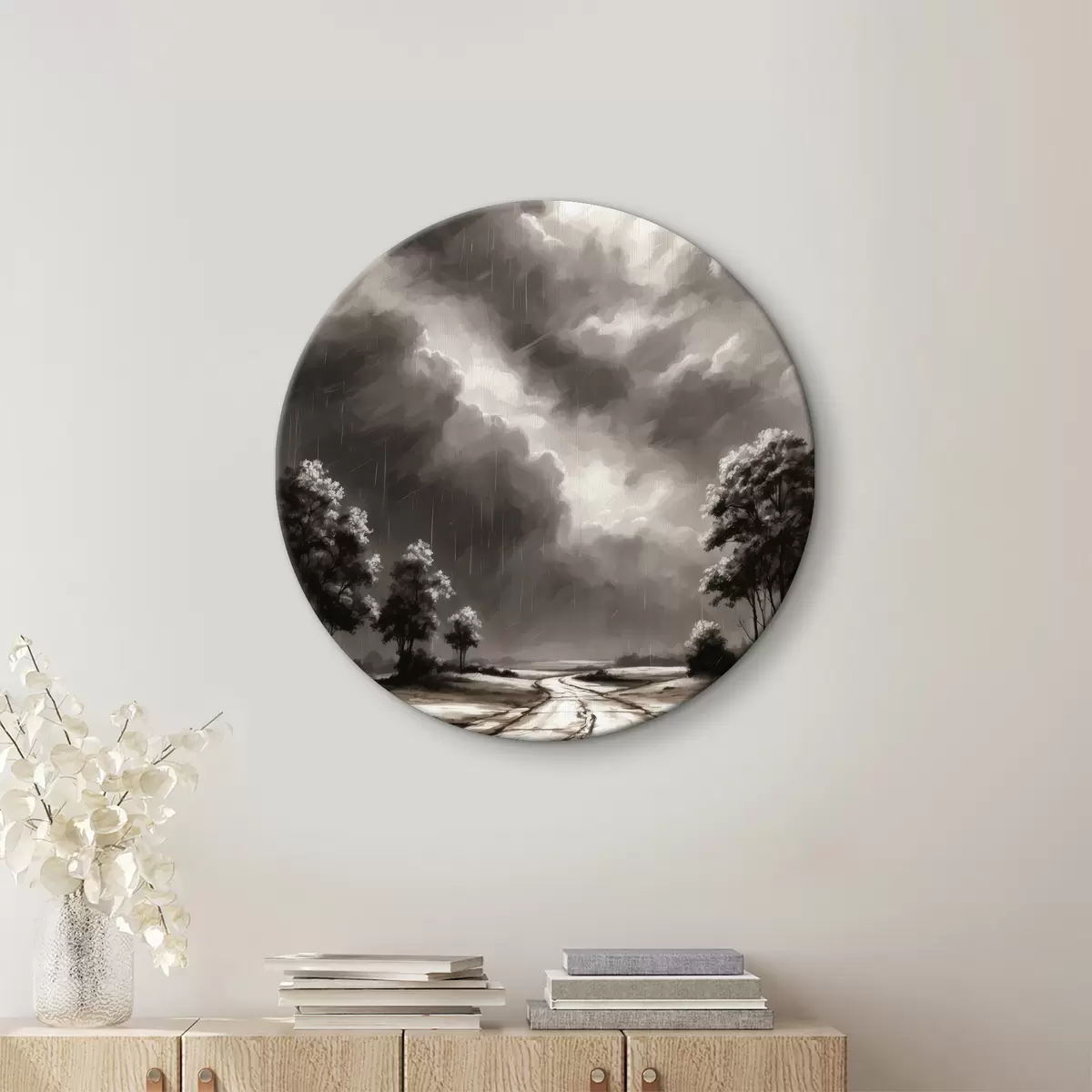 Tableaux rondes Chemin de terre sous une pluie battante Nr r40059