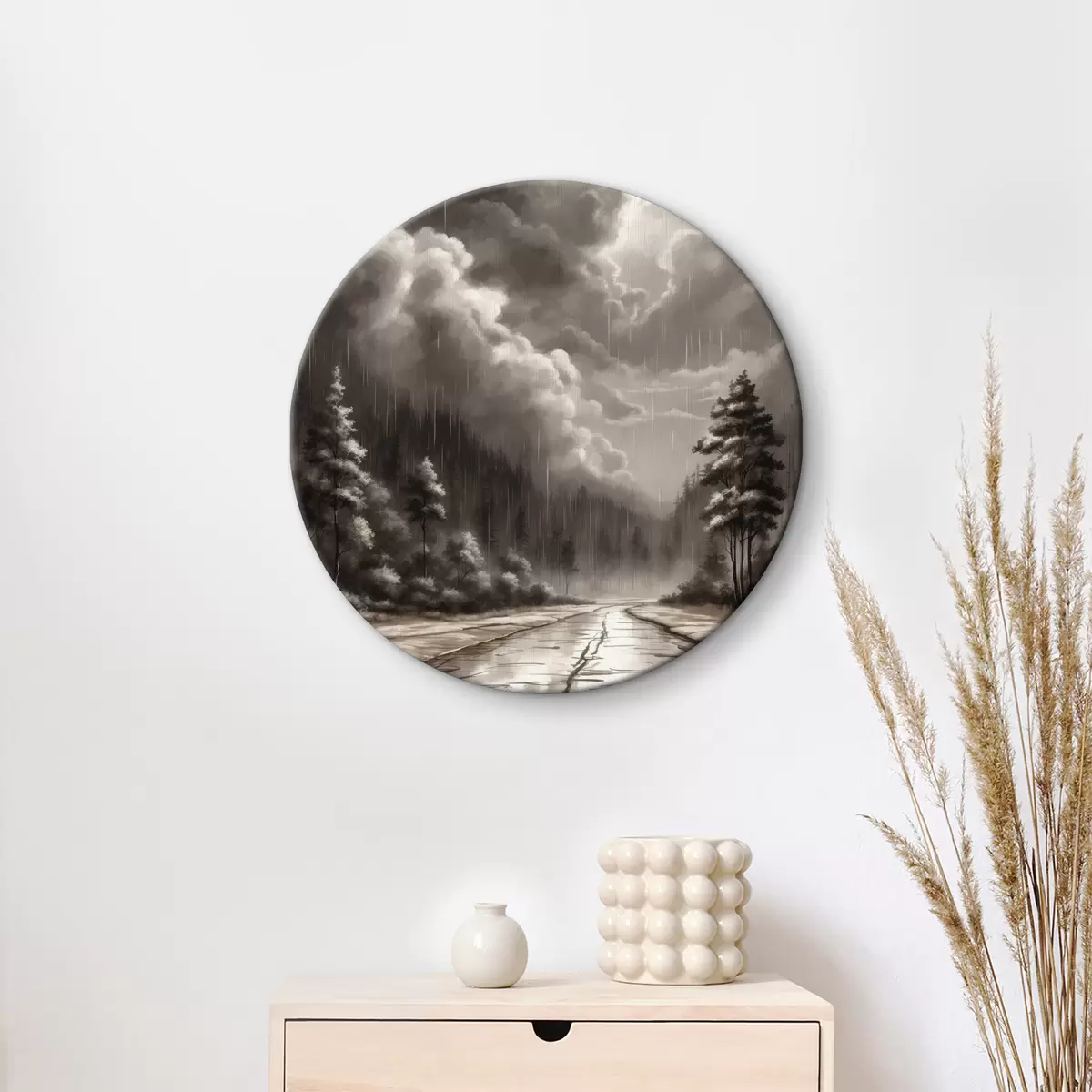 Tableaux rondes Route dans la forêt sous une forte pluie Nr r40064