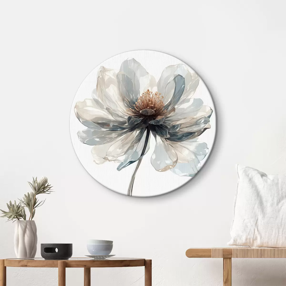 Tableaux rondes Fleur bleue transparente sur fond blanc Nr r40067