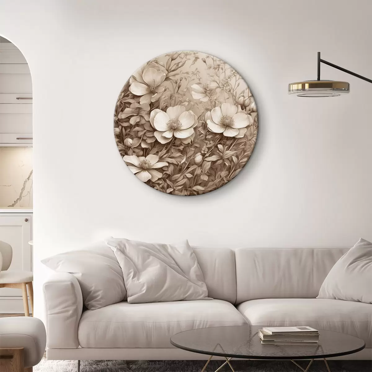 Tableaux rondes Fleurs et feuilles en sépia r40072