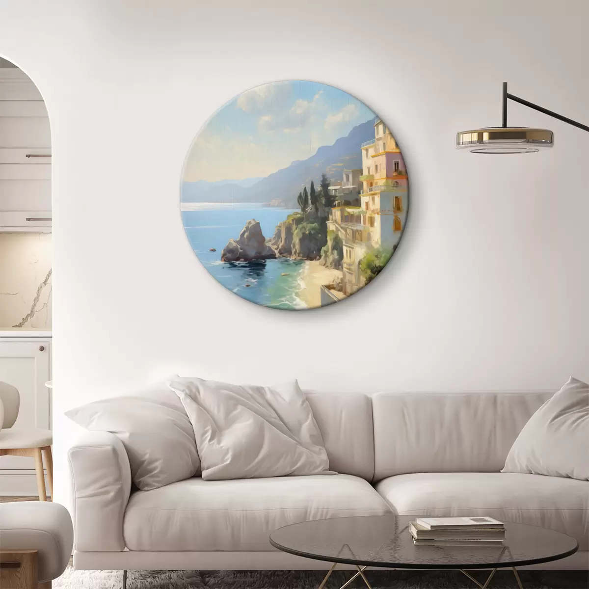 Tableaux rondes Vue de la baie de la mer, des montagnes en Italie depuis l'hôtel imitation de peinture à l'huile Nr r40088