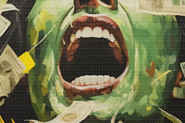 Tableaux rondes Portrait de femme verte sur fond jaune, cri, billets de papier, imitation d'argent de peinture à l'huile r40096