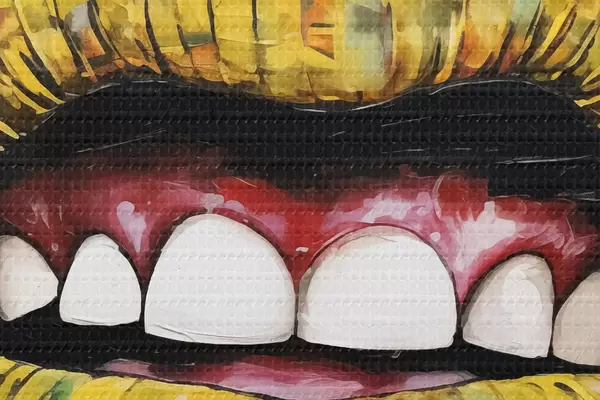 Tableaux rondes Lèvres jaunes, dents blanches, visage en billets de banque imitation de peinture à l'huile r40098