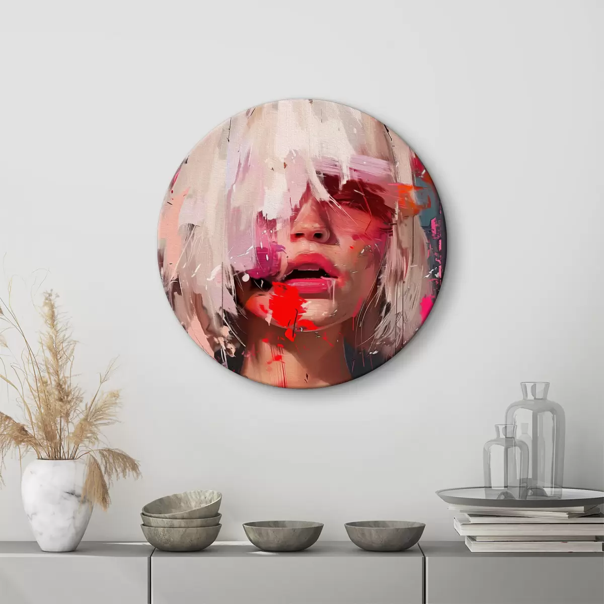 Tableaux rondes Fille blonde avec un carré et de la peinture colorée Nr r40110