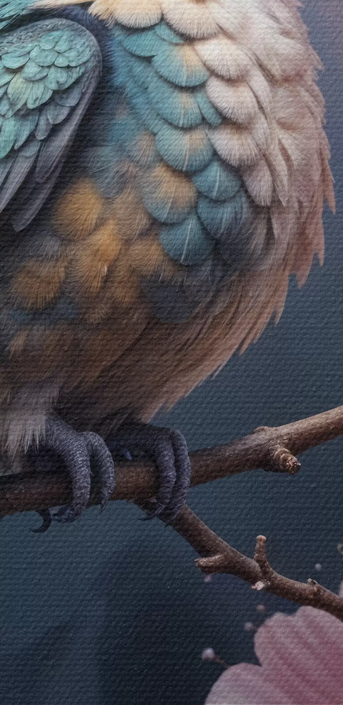 Trois types de matériaux peuvent être commandés : Economic Canvas - matériau dense et durable pour l'impression numérique, identique à la toile de peintre, surface imperméable, reproduction réaliste des détails, matériau à grain moyen. Premium Canvas - la texture ressemble à celle d'une toile de peintre (petits fils entrelacés). Reproduction douce et détaillée de l'image sur une surface mate. Eco-Premium - tissu 100 % coton de haute qualité. Grâce aux fibres naturelles de coton, le matériau est durable et résistant à l'usure. Excellente reproduction des couleurs et des détails.