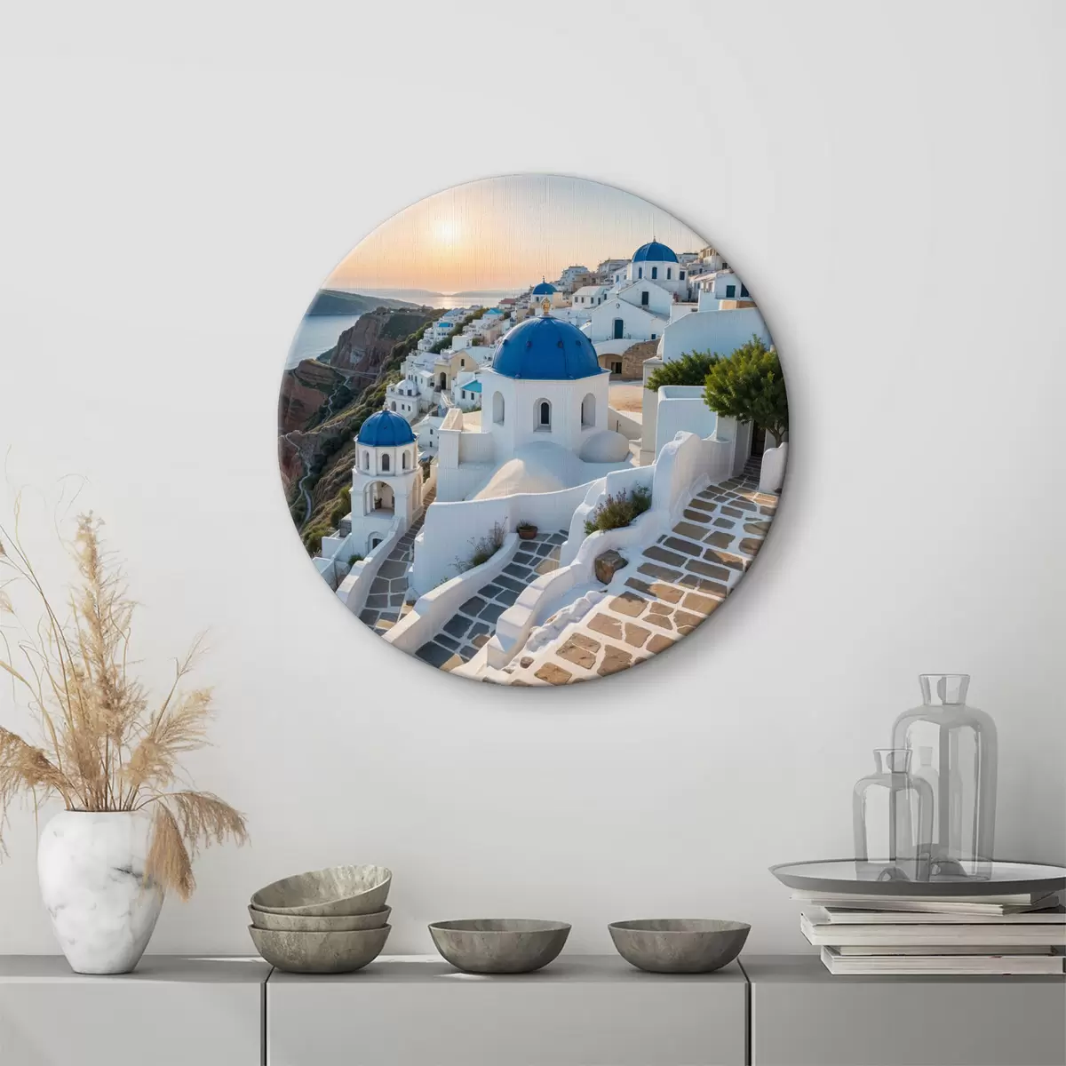 Tableaux rondes L'île de Santorin, en Grèce. La ville est construite sur une colline surplombant la mer Égée Nr r40160