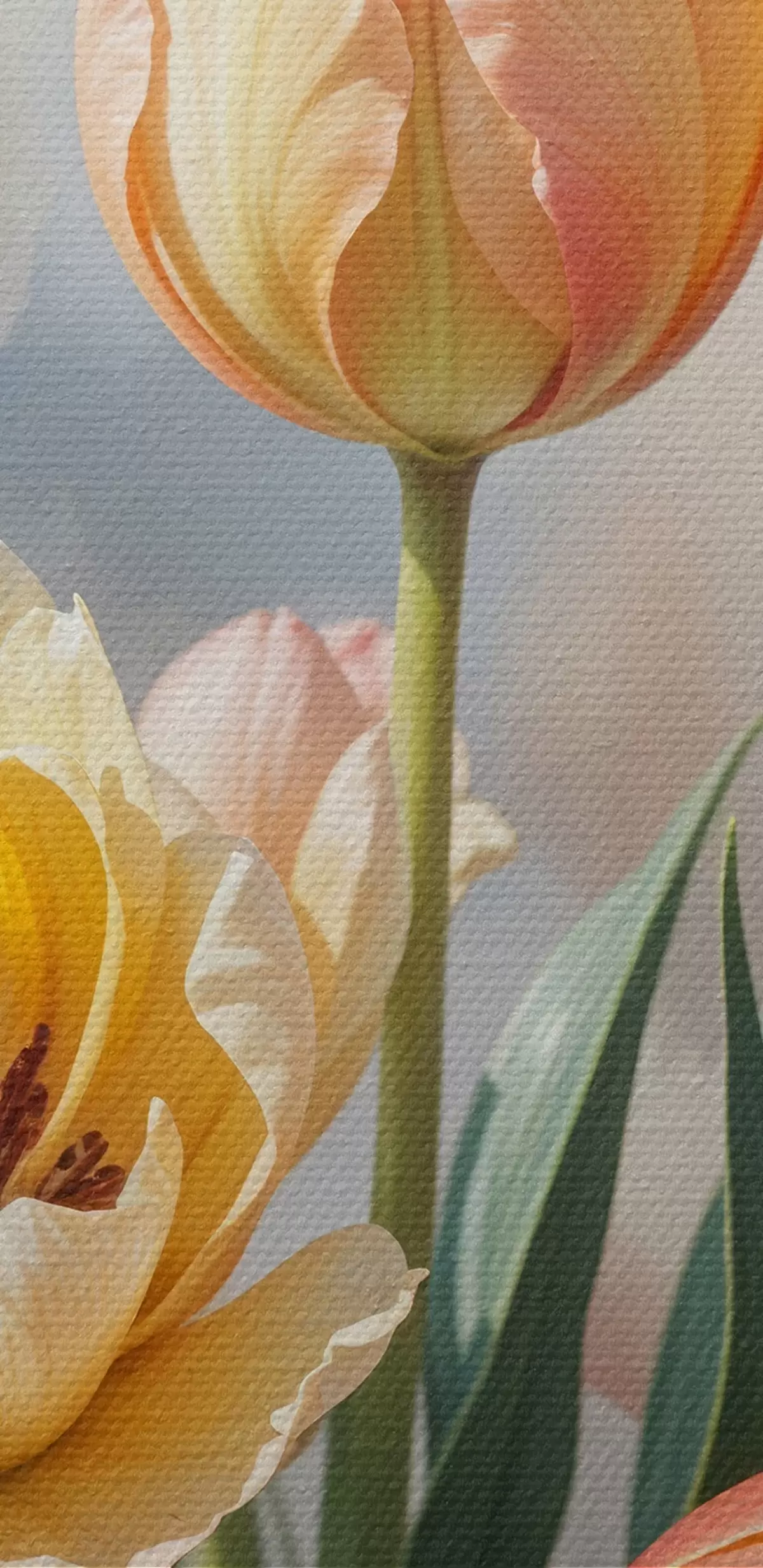 Trois types de matériaux peuvent être commandés : Economic Canvas - matériau dense et durable pour l'impression numérique, identique à la toile de peintre, surface imperméable, reproduction réaliste des détails, matériau à grain moyen. Premium Canvas - la texture ressemble à celle d'une toile de peintre (petits fils entrelacés). Reproduction douce et détaillée de l'image sur une surface mate. Eco-Premium - tissu 100 % coton de haute qualité. Grâce aux fibres naturelles de coton, le matériau est durable et résistant à l'usure. Excellente reproduction des couleurs et des détails.