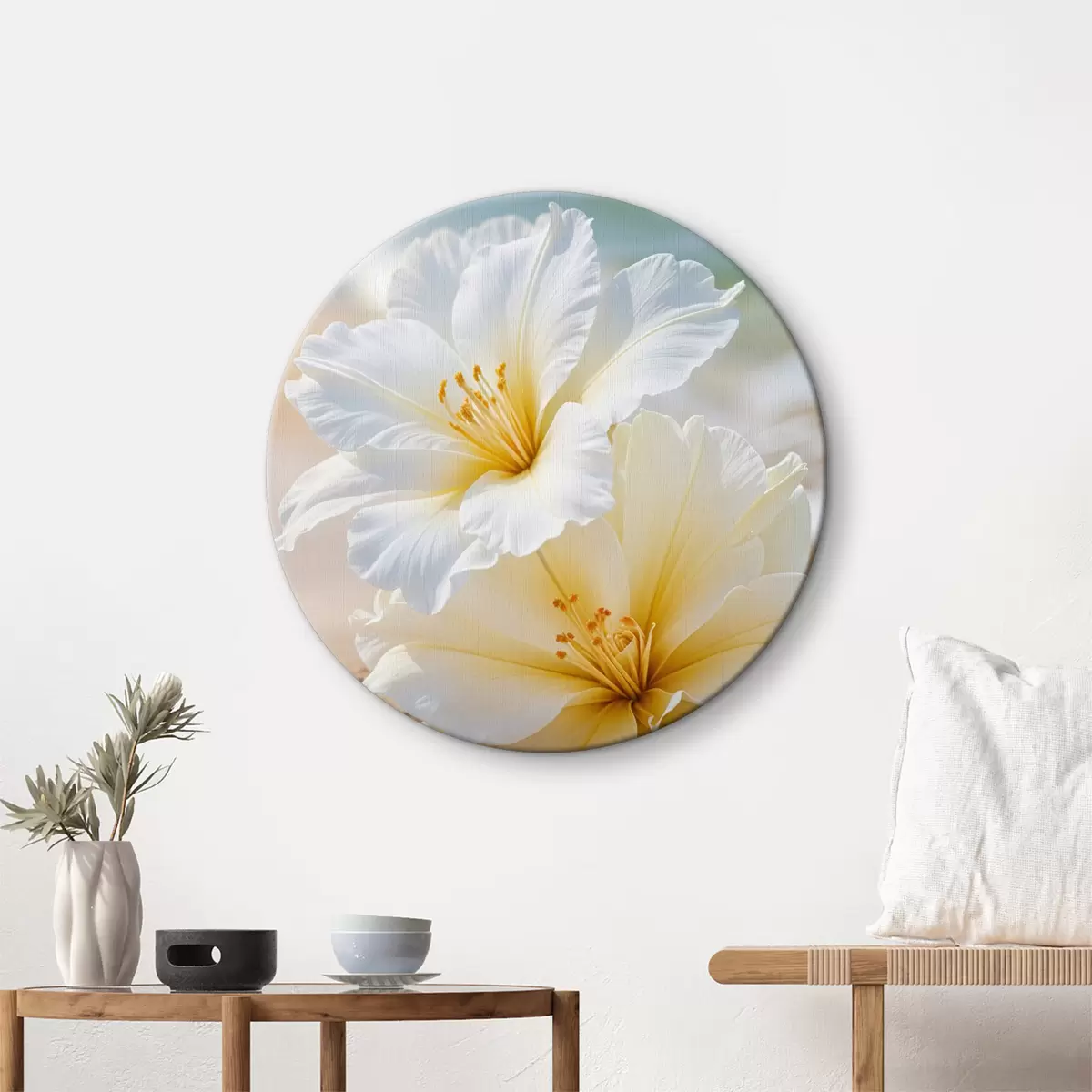Tableaux rondes Fleurs blanches et jaunes avec un arrière-plan flou Nr r40169